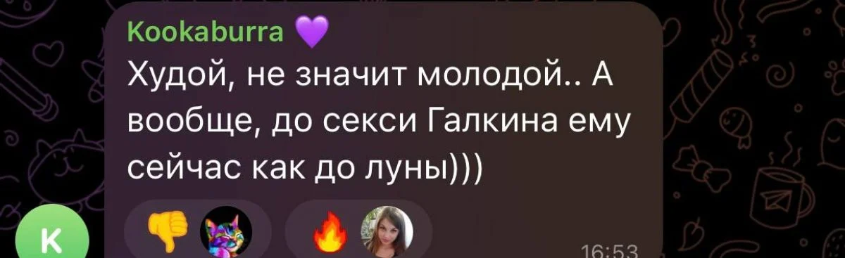 ...Bundan əlavə, onlar qeyd etdilər ki, Kirkorov Alla Puqaçevanın hazırkı əri Maksim Qalkindən hələ də çox uzaqdır.