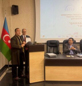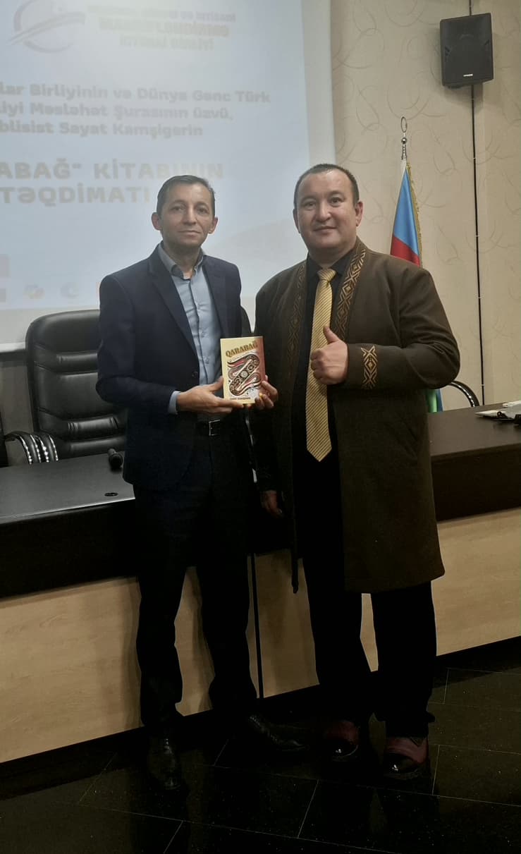 Aprelin 11-də Bakı şəhərində, Milli QHT Forumunun mənzil-qərargahında Dünya Gənc Türk Yazarlar Birliyi ilə Regional Hüquqi və İqtisadi Maarifləndirmə İctimai Birliyinin birgə təşkilatçılığı ilə Qazaxıstan Yazıçılar Birliyinin və DGTYB Məsləhət Şurasının üzvü, şair-publisist Sayat Kamşıgerin “Qarabağ” kitabının təqdimat mərasimi keçirilib.