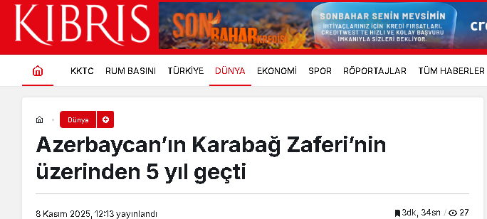 Bakıda keçirilən əzəmətli hərbi parad barədə "Kıbrıs Qəzeti" yazır: "Azərbaycan ordusunun təxminən 30 ildir Ermənistanın işğalı altında olan Qarabağı və ətraf rayonları azad etməsindən beş il ötür. İkinci Qarabağ müharibəsində Azərbaycan işğal olunmuş ərazilərini cəmi 44 günə geri aldı, nəsillərin gözləntilərinə son qoydu və tarixi bir qələbə qazandı.