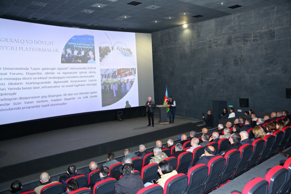 Daha sonra “Lacinema” şəhər kinoteatrında təşkil olunan tədbiqdə Laçında görülən bütün işlər haqda ümumi təqdimat edildi, videoçarx və slaydlar vasitəsilə ətraflı məlumatlar verildi.