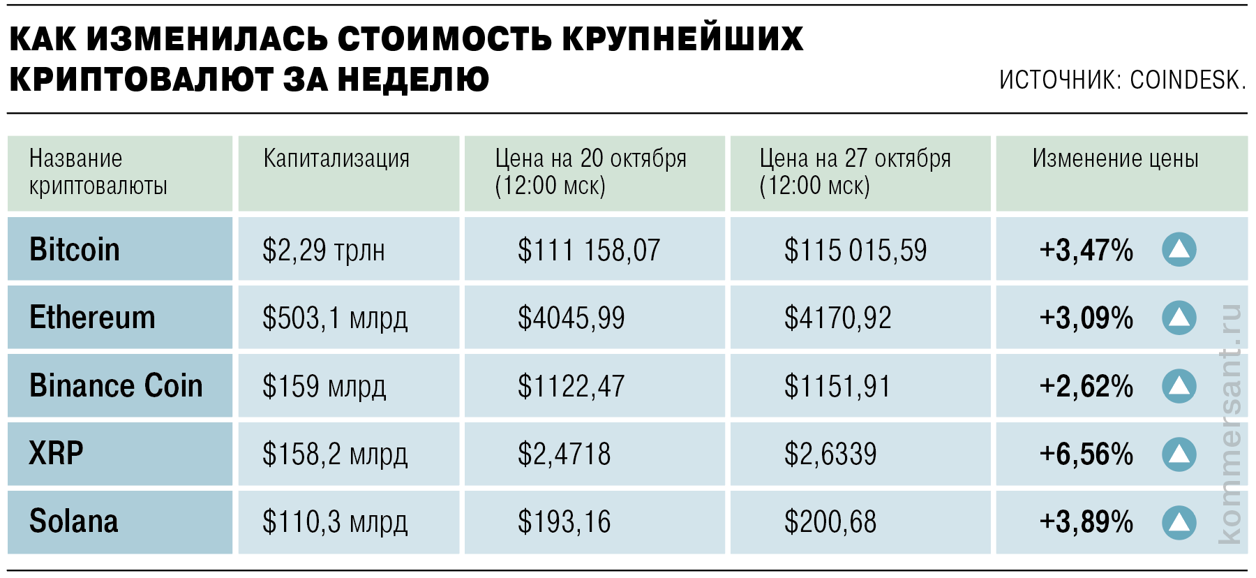 Oktyabrın əvvəlindən bəri bir neçə əhəmiyyətli eniş yaşayan və 3 aylıq ən aşağı səviyyəyə düşən kriptovalyuta bazarı tədricən itkilərini bərpa etməyə başlayıb. 20-27 oktyabr həftəsi ərzində CoinDesk 20 İndeksi 3,78% qazanaraq bazar ertəsi saat 12:00-a qədər 3842,68 bala çatıb. Alfa-Forex şirkətinin Müştəri Dəstəyi və Satış şöbəsinin müdiri Aleksandr Şnayderman qeyd edir ki, artım orta dərəcədə müsbət makroiqtisadi məlumatlarla dəstəklənib: ABŞ-da inflyasiya gözləntilərin altında idi və bu da FED-in yumşaq mövqeyinə ümidləri artırıb.