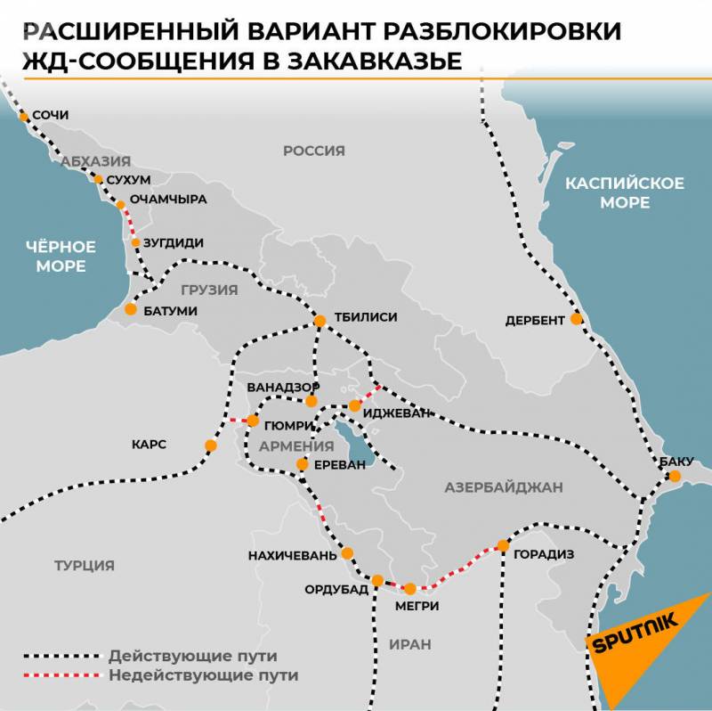 Sentyabrın ortalarında Ermənistan və Türkiyənin xüsusi nümayəndələri Ruben Rubinyan və Serdar Kılıç Yerevanda keçirilən görüşdə Gümrü (Ermənistan) və Qars (Türkiyə) arasında təxminən 200 km uzunluğunda dəmir yolu xəttinin istifadəyə verilməsi üçün texniki tədqiqatlara başlamaq barədə razılığa gəldilər. Xatırladaq ki, bu xətt 1993-cü ildən bəri Ankaranın qərarı ilə fəaliyyət göstərmir, lakin 2010-cu illərin ortalarından etibarən tərəflər onun bərpası və qismən modernləşdirilməsi ilə bağlı məsləhətləşmələr aparırlar. Azərbaycan və Ermənistan arasında tranzitin açılması ilə, o cümlədən İcevan (şimal-şərqi Ermənistan) ilə Qazax (şimal-qərbi Azərbaycan) arasında təxminən 50 km uzunluğunda ən qısa birləşdirici hissənin açılması ilə Gümrü-Qars xətti Rusiya-Azərbaycan-Ermənistan-Türkiyə-Balkanlar/Şərqi Aralıq dənizi kimi ən qısa dəmir yolu dəhlizinin bir hissəsinə çevriləcək.