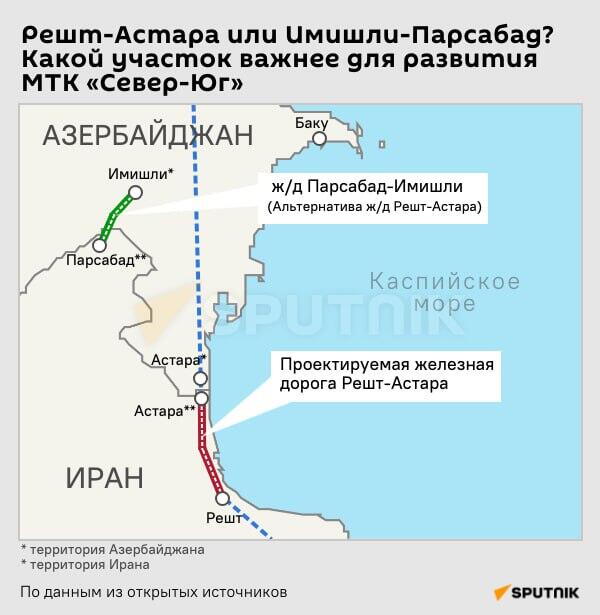 Yerli mənbələr bildirir ki, Cənubi Qafqazda dövlətlərarası və tranzit arteriyalarının açılması Parsabaddan İmişliyə (təxminən 70 km) yeni İran-Azərbaycan dəmir yolu xəttinin tikintisini irəli aparır. Bu, Şimal-Cənub Beynəlxalq Nəqliyyat Dəhlizinin qərbi Xəzər sektorunun cənub-qərbi İran limanlarına (Abadan, Xorrəmşəhr, Bəndər-Deylam) ən qısa məsafədə çatmasına imkan verəcək.