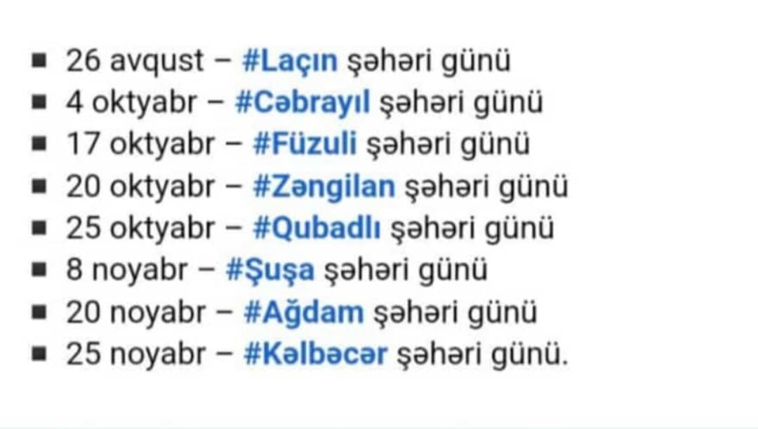 Bu gün Havalı, Zərnəli, Məmmədbəyli, Həkəri, Şərifan, Muğanlı kəndləri və Zəngilan şəhəri! Zəngilan bizimdir! Qarabağ bizimdir!