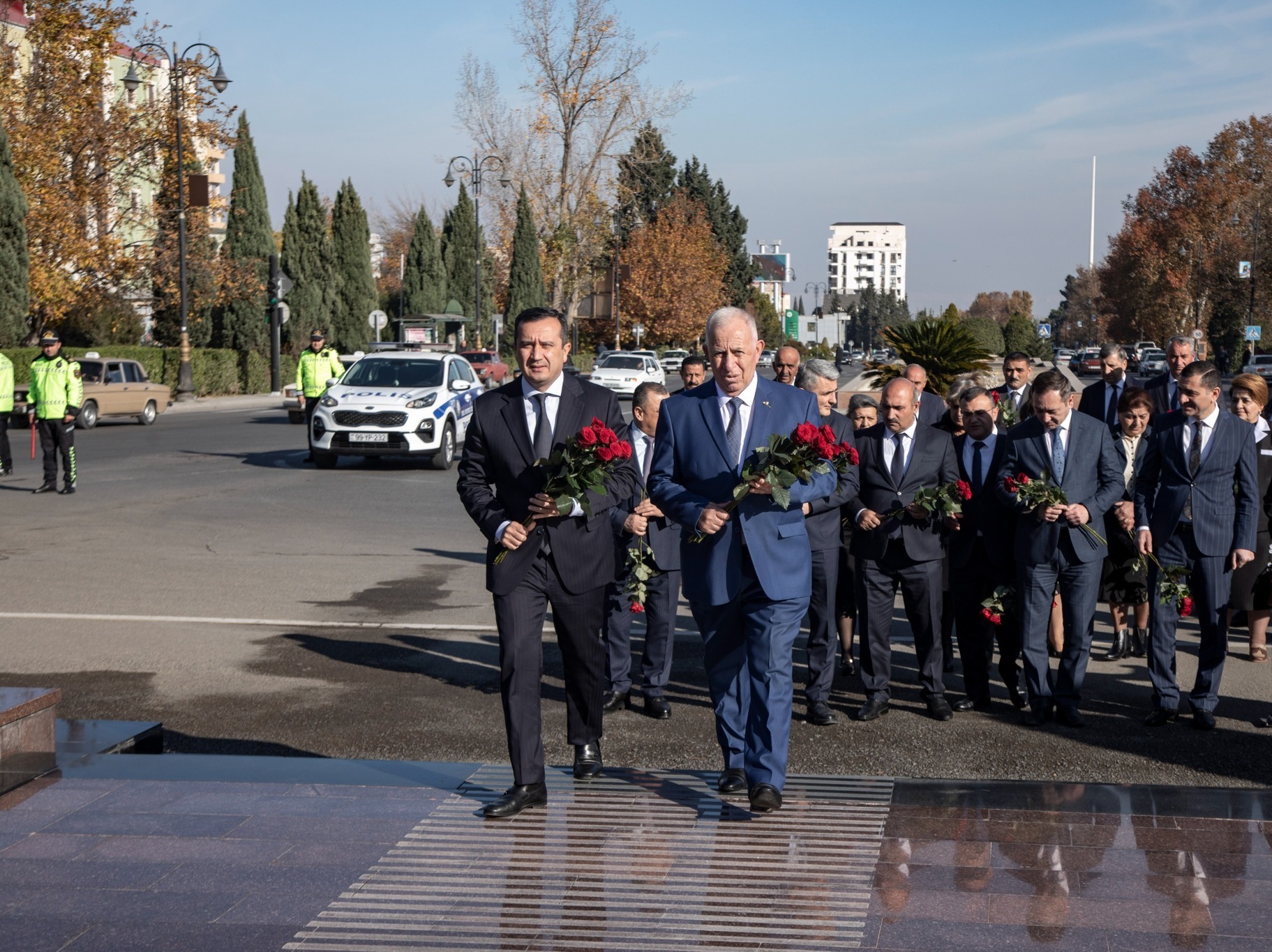 Tədbir iştirakçıları əvvəlcə Ulu Öndər Heydər Əliyevin abidəsini ziyarət edərək önünə gül dəstələri qoyub, Ümummilli Liderin əziz xatirəsinə dərin hörmət və ehtiramlarını ifadə ediblər. Daha sonra Şəmkir şəhərinin mərkəzində yerləşən Şəhidlər xiyabanında Azərbaycanın ərazi bütövlüyü uğrunda canlarından keçmiş şəhidlərimizin xatirəsinə ucaldılmış abidə kompleksi ziyarət olunub.Azərbaycan Respublikasının Dövlət Himni səsləndirilib. Ulu Öndər Heydər Əliyev və şəhidlərimizin xatirəsi bir dəqiqəlik sükutla yad edilib.