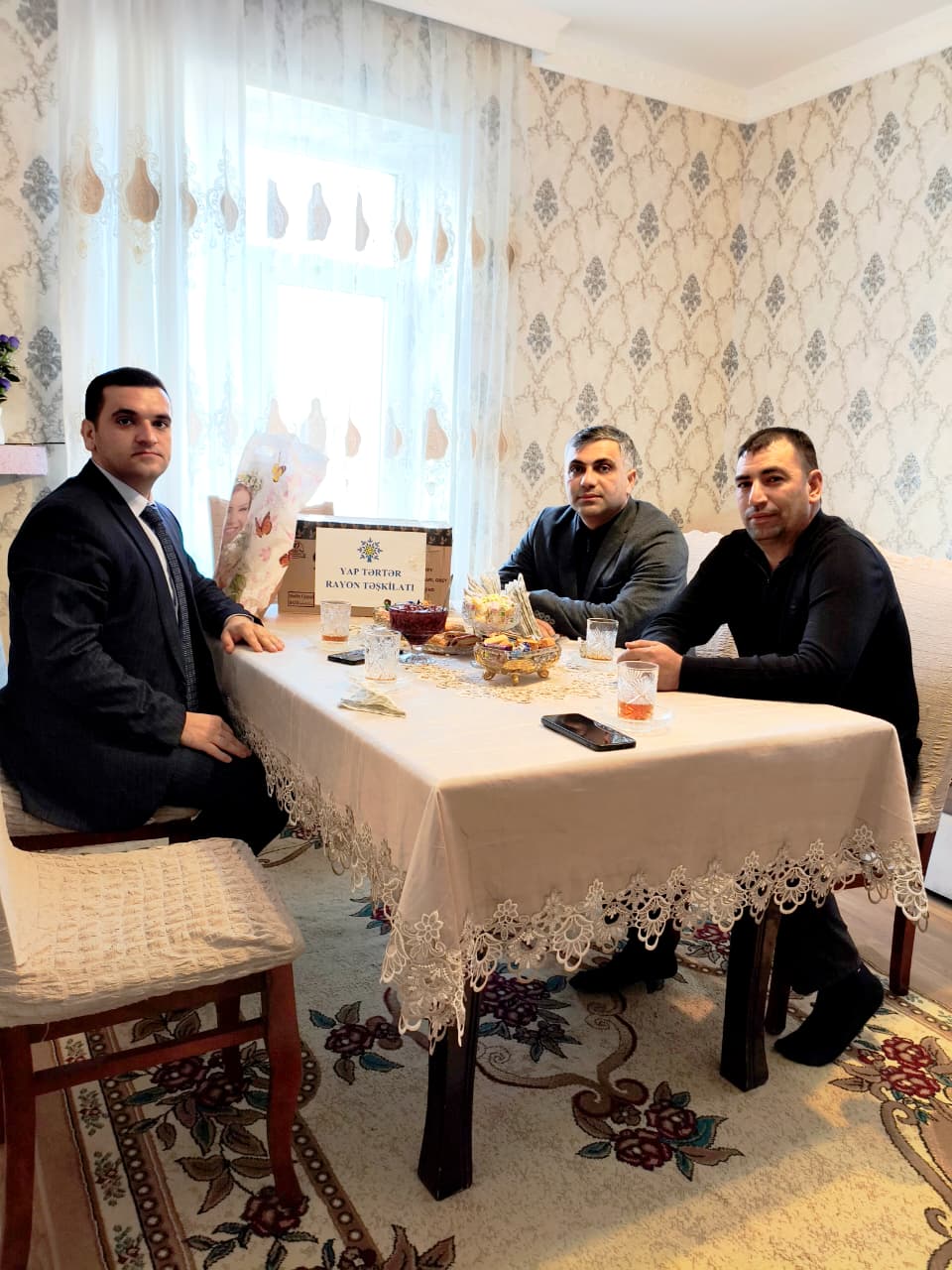 “Konstitusiya və Suverenlik İli” ilə əlaqədar YAP Tərtər rayon təşkilatının Tədbirlər Planına uyğun olaraq, təşkilatın sədri Eldar Əsədov və əməkdaşlar Azərbaycan Respublikasının ərazi bütövlüyü uğrunda şəhid olmuş bir qrup şəhid ailəsini, eləcə də Vətən müharibəsində sağlamlığını itirmiş qaziləri ziyarət etmişlər. Görüş zamanı ailələrin qayğıları ilə maraqlanılmış, onların müraciətləri dinlənilmiş və 3 Dekabr – Beynəlxalq Əlillər Günü münasibətilə onlara ərzaq sovqatı təqdim edilmişdir.