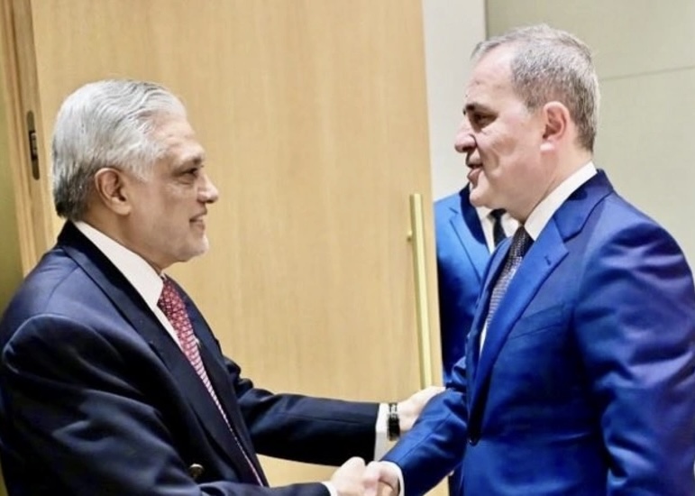 Azərbaycanın xarici işlər naziri Ceyhun Bayramovla pakistanlı həmkarı İshaq Dar arasında görüş olub.SİA xəbər verir ki, bu barədə İ. Dar "X" sosial şəbəksində paylaşım edib.Sir Bani Yas Forumu çərçivəsində Birləşmiş Ərəb Əmirliklərində baş tutan görüşdə regional və ikitərəfli məsələlər müzkaiər edilib.