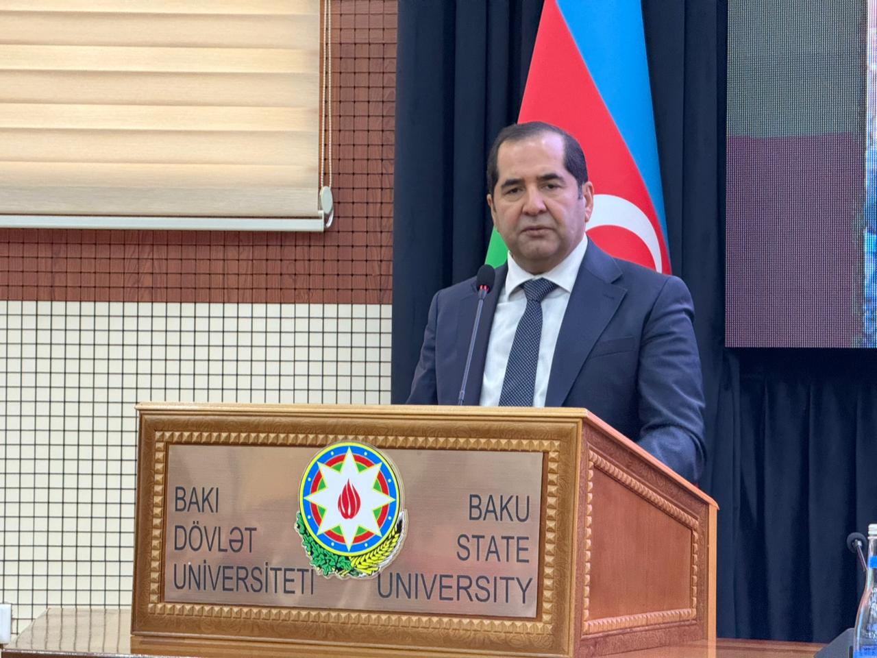 Geologiya fakültəsinin dekanı Mamoy Mansurov Konstitusiya və Suverenlik İlinin ölkəmizin müasir tarixində xüsusi yerə malik olduğunu bildirib. Ulu Öndərin siyasi uzaqgörənliyi müasir Azərbaycan dövlətinin davamlı inkişafının təməlində dayanır. Onun rəhbərliyi ilə hüquqi sistemin institusionallaşması dövlət idarəçiliyinin səmərəliliyini təmin edən əsas şərtə çevrildi. Ulu Öndər Heydər Əliyev tərəfindən müəyyən edilən konstitusion prinsiplər bu gün ölkənin siyasi, iqtisadi və sosial həyatının dayanıqlı inkişafını təmin edir. Tədbir həmin tarixi irsin elmi şəkildə öyrənilməsi üçün mühüm zəmindir. Prezident İlham Əliyevin apardığı modern hüquqi islahatlar Ulu Öndərin müəyyən etdiyi strateji xəttin davamı kimi xüsusi əhəmiyyət kəsb edir. Bu islahatlar Azərbaycanı regionun ən güclü hüquqi dövlət modellərindən birinə çevirib. O, Prezident İlham Əliyevin rəhbərliyi ilə Azərbaycan dövlətinin müstəqilliyinin və suverenliyinin tam təmin edildiyini, ölkəmizin beynəlxalq nüfuzunun əhəmiyyətli dərəcədə artdığını vurğulayıb. Dekan universitetlərin və elmi müəssisələrin bu ideyaların gənc nəslə çatdırılmasında mühüm rol oynadığını qeyd edib.