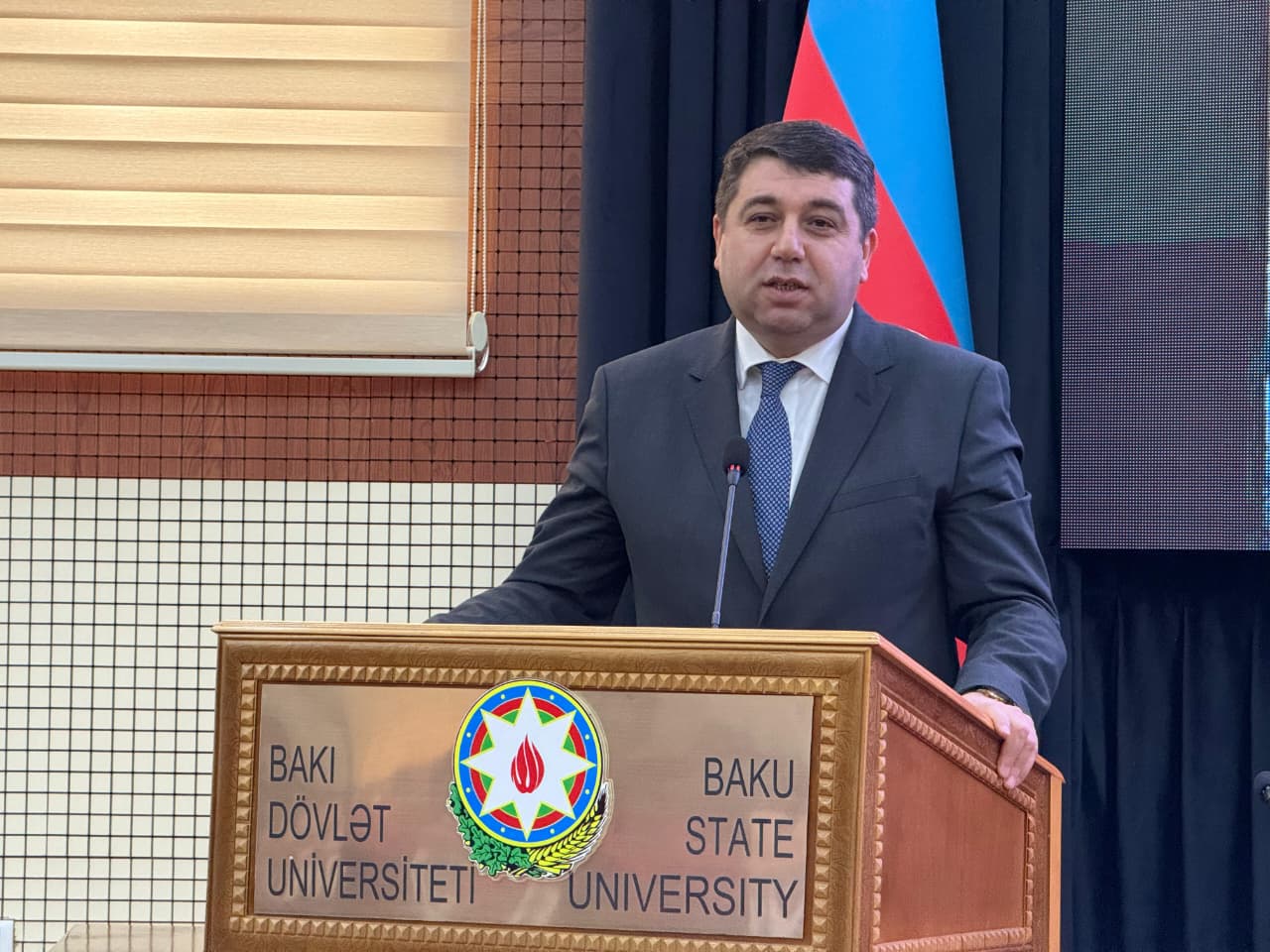 Tədbirdə çıxış edən BDU Geologiya fakültəsinin Faydalı qazıntılar kafedrasının müdiri Vasif Babazadə Azərbaycanın təbii ehtiyatlarının səmərəli idarə olunmasının milli suverenliyin iqtisadi əsaslarını möhkəmləndirdiyini bildirib. Akademik elmin, xüsusilə geologiya sahəsinin ölkənin strateji inkişaf planlarında mühüm yer tutduğunu vurğulayıb. Bu cür tədbirlərin Konstitusiya və Suverenlik İli çərçivəsində ideoloji maarifləndirmə işinin gücləndirilməsinə, dövlətçilik dəyərlərinin təbliğinə və universitet–ictimaiyyət əlaqələrinin möhkəmləndirilməsinə mühüm töhfə verdiyi qeyd olunub. Qeyd olunub ki, Ulu Öndər Heydər Əliyev Azərbaycan dövlətçiliyinin siyasi və ideoloji sütunlarını müəyyənləşdirərək ölkənin gələcək inkişaf yolunu dəqiq formalaşdırdı. O, ağır tarixi şəraitdə xalqı parçalanmaq təhlükəsindən xilas edən xilaskar lider kimi yaddaşlara həkk olundu. Ulu Öndər milli həmrəyliyi gücləndirmək üçün ardıcıl və prinsipial addımlar atdı. Bu addımlar sonrakı dövr üçün də dövlət idarəçiliyində etibarlı yol xəritəsinə çevrildi. Prezident İlham Əliyev bu siyasi irsin davamçısı kimi ölkəni yeni zirvələrə yüksəltdi. Onun həyata keçirdiyi nəhəng iqtisadi, diplomatik və hərbi islahatlar Azərbaycanın gücünü dünya miqyasında daha da artırdı.