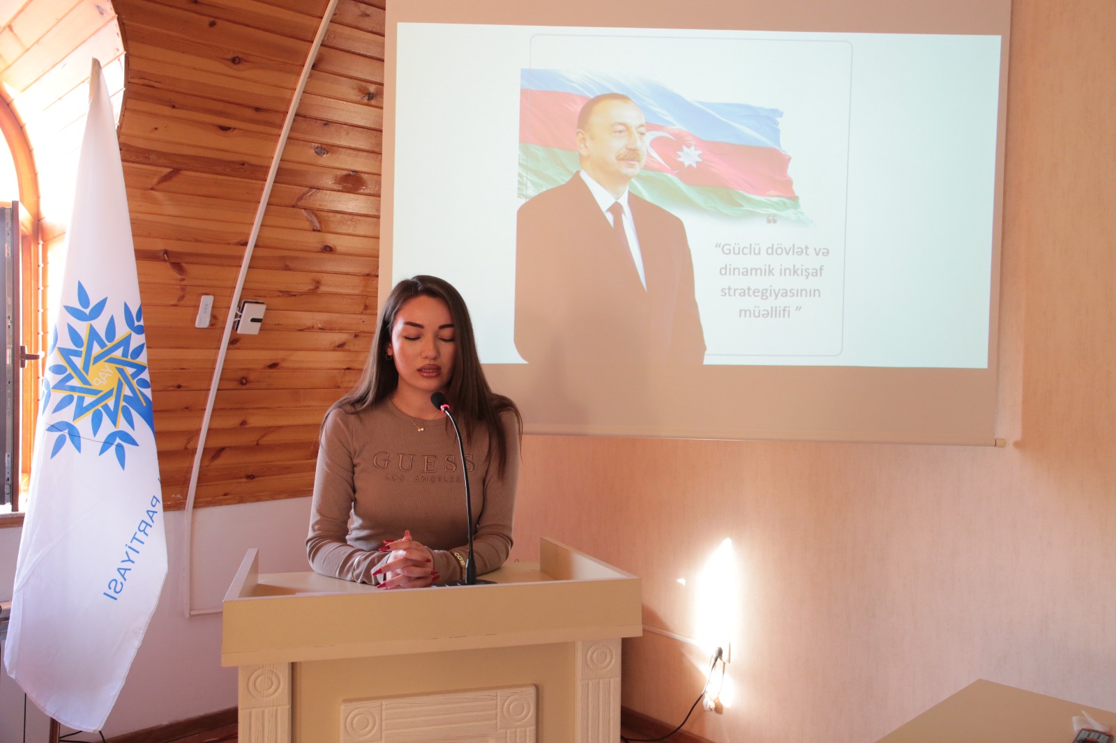Heyvandarlıq Elmi Tədqiqt İnstitutu ərazi partiya təşkilatının fəal üzvü, Partiya veteranı Qafar Məmmədovun “Güclü dövlət və dinamik inkişaf strategiyasının müəllifi” mövzusunda məruzəsi dinlənildikdən sonra partiya fəalları Sara Məsimova və digərləriçıxış etmiş, bütün çıxış və nitqlərdə Ulu Öndər Heydər Əliyevin zəngin dövlətçilik irsi və Prezident İlham Əliyevin məqsədyönlü siyasəti nəticəsində qazanılan uğurlardan bəhs olunmuş, Azərbaycan özünü bölgənin ən güclü və qalib dövləti kimi təsdiqlədiyi və bu liderliyin əsrlər boyu davam edəcəyi bildirilmişdir.
