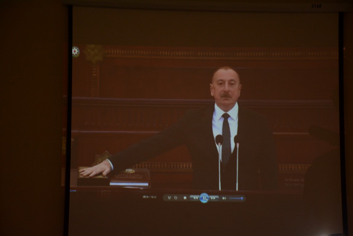 Dövlət himni səsləndirildikdən sonra Azərbaycan Respublikası Prezidentinin siyasi fəaliyyətinin əks etdirən film nümayiş etdirilib.