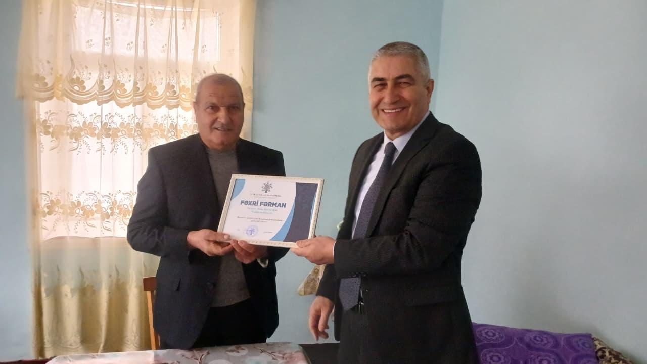 Görüşün sonunda partiya veteranı Alim Nuriyevə rayon təşkilatının ictimai-siyasi həyatında fəal iştirakına və 70 illik yubileyi münasibətilə Fəxri Fərman və xatirə hədiyyəsi təqdim edilmişdir.