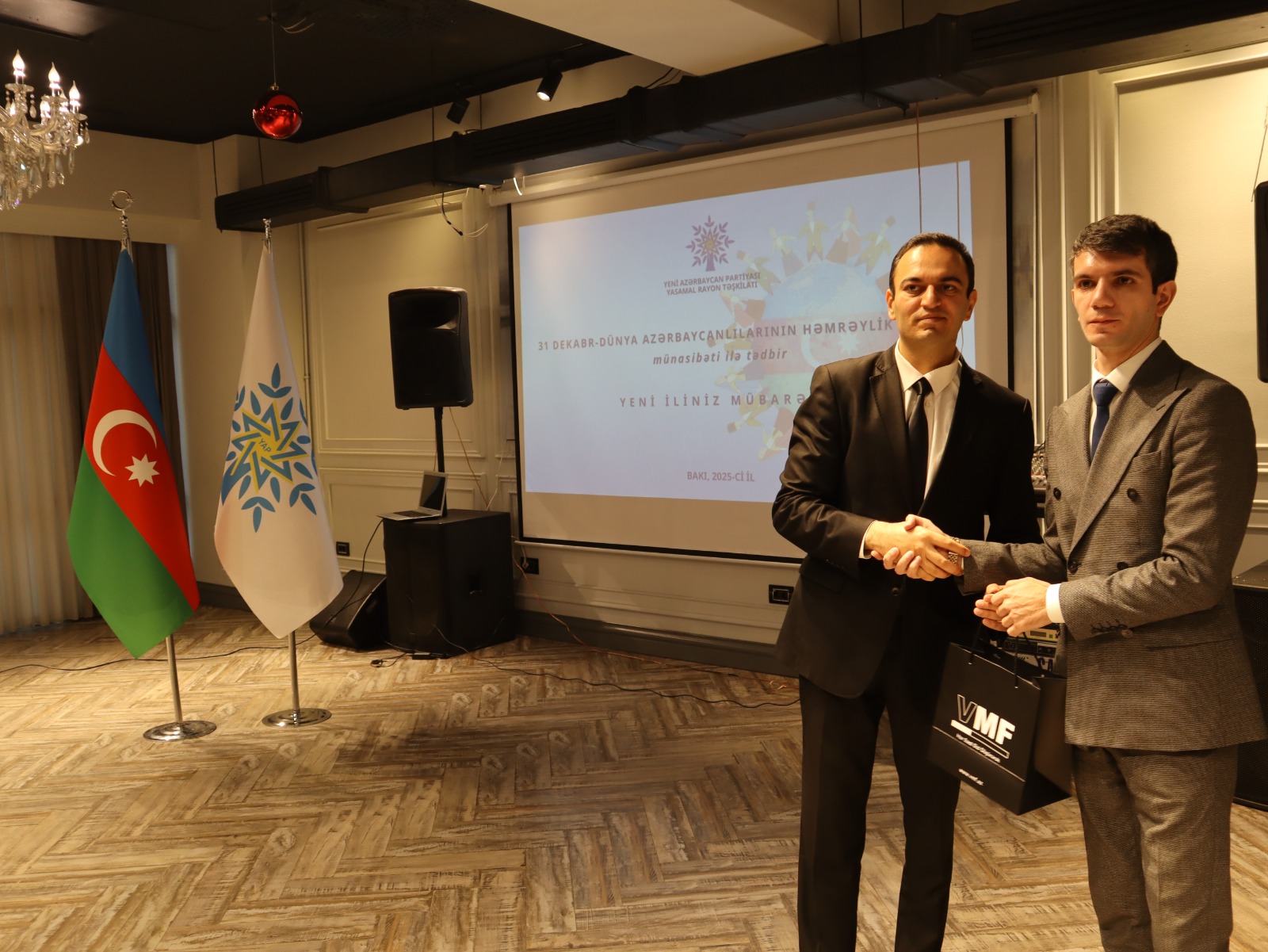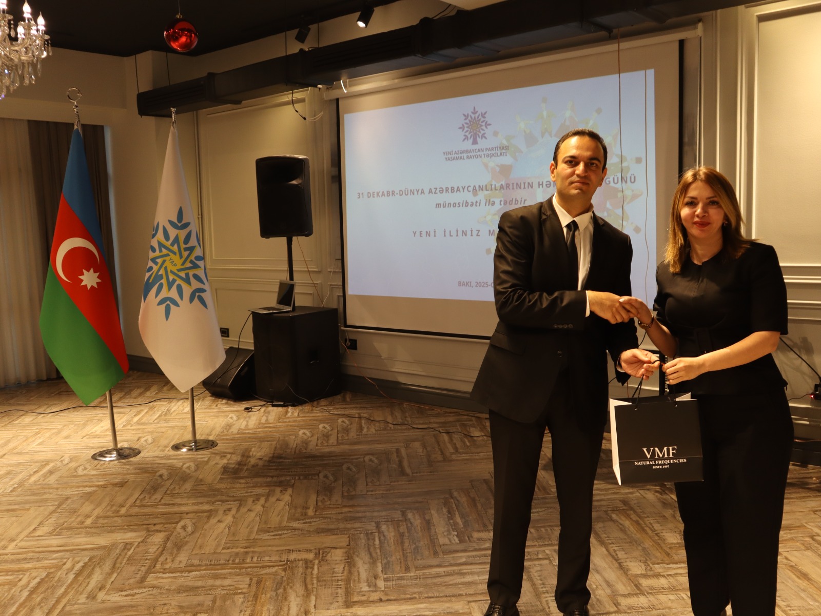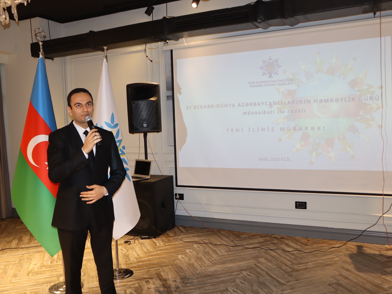 Yeni Azərbaycan Partiyasının (YAP) Yasamal rayon təşkilatı tərəfindən “Konstitusiya və Suverenlik İli” çərçivəsində “31 Dekabr-Dünya Azərbaycanlılarının Həmrəylik Günü” münasibəti ilə tədbir keçirilib. Tədbirdə Yeni Azərbaycan Partiyası Yasamal rayon təşkilatının sədri Bəxtiyar Nəbiyev, YAP Mərkəzi Aparatının İnformasiya texnologiyaları və ictimaiyyətlə əlaqələr şöbəsinin müdiri Nurlan Qələndərli, partiyanın Gənclər Birliyinin sədri Bəxtiyar İslamov, rayon təşkilatının və partiyanın sosial media üzrə nümayəndələri, YAP Yasamal rayon təşkilatının aktiv gəncləri və fəalları iştirak ediblər.