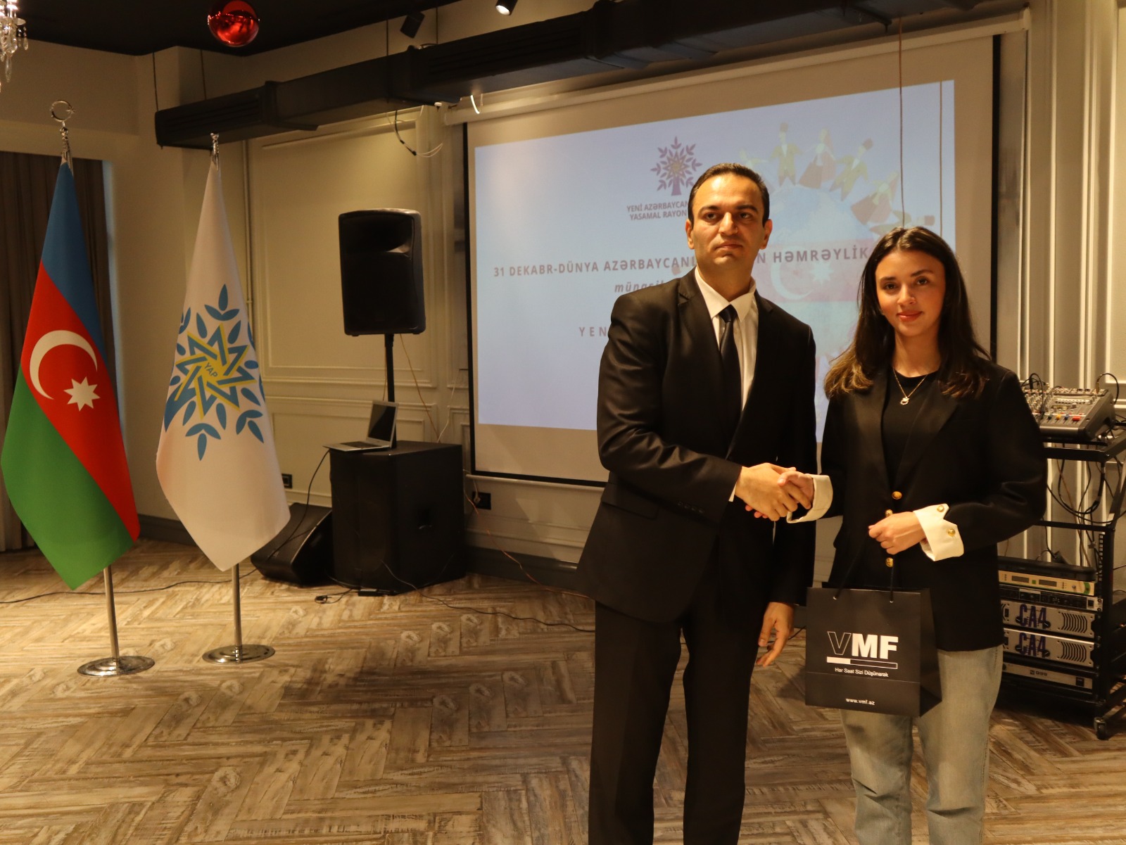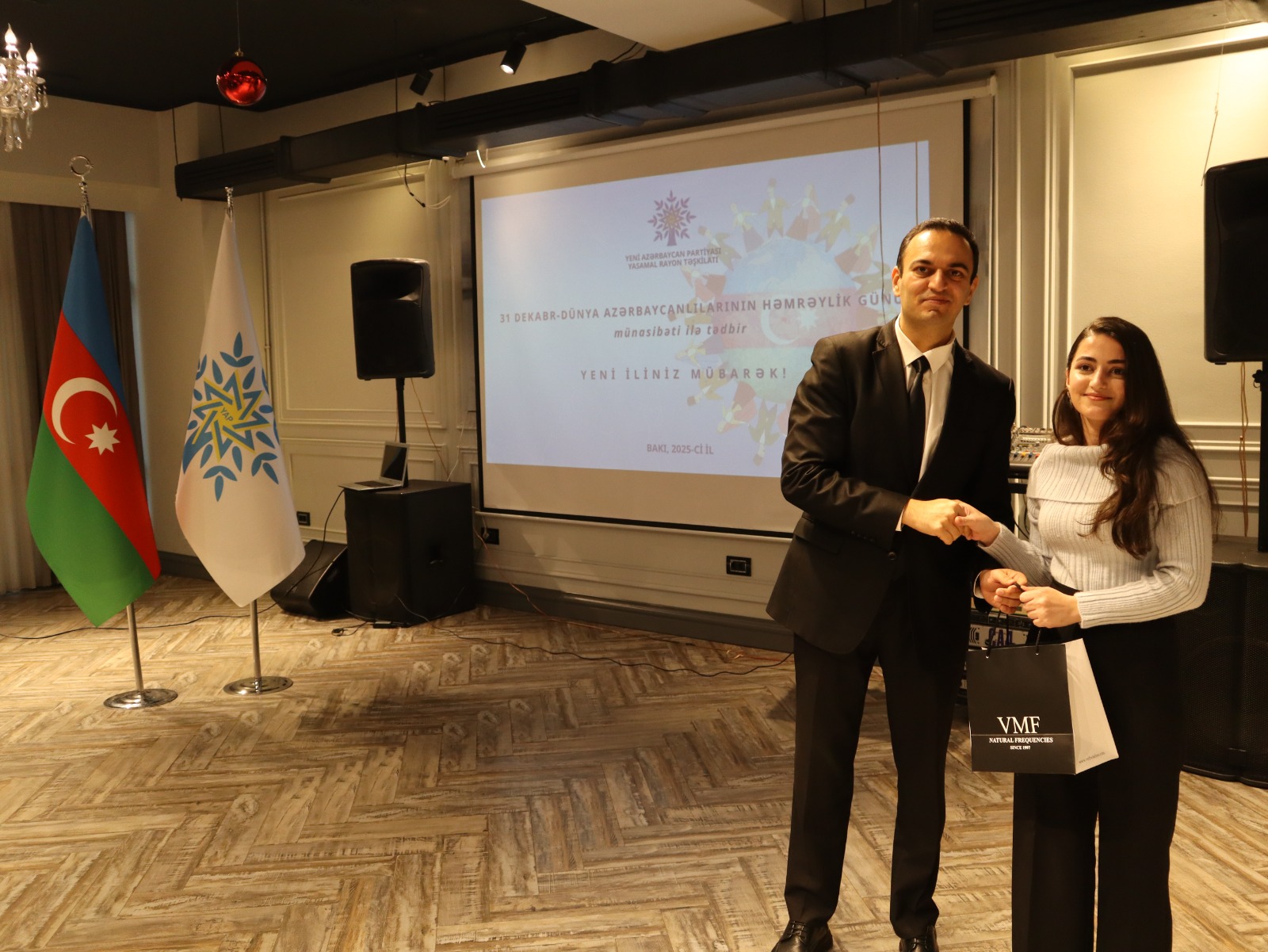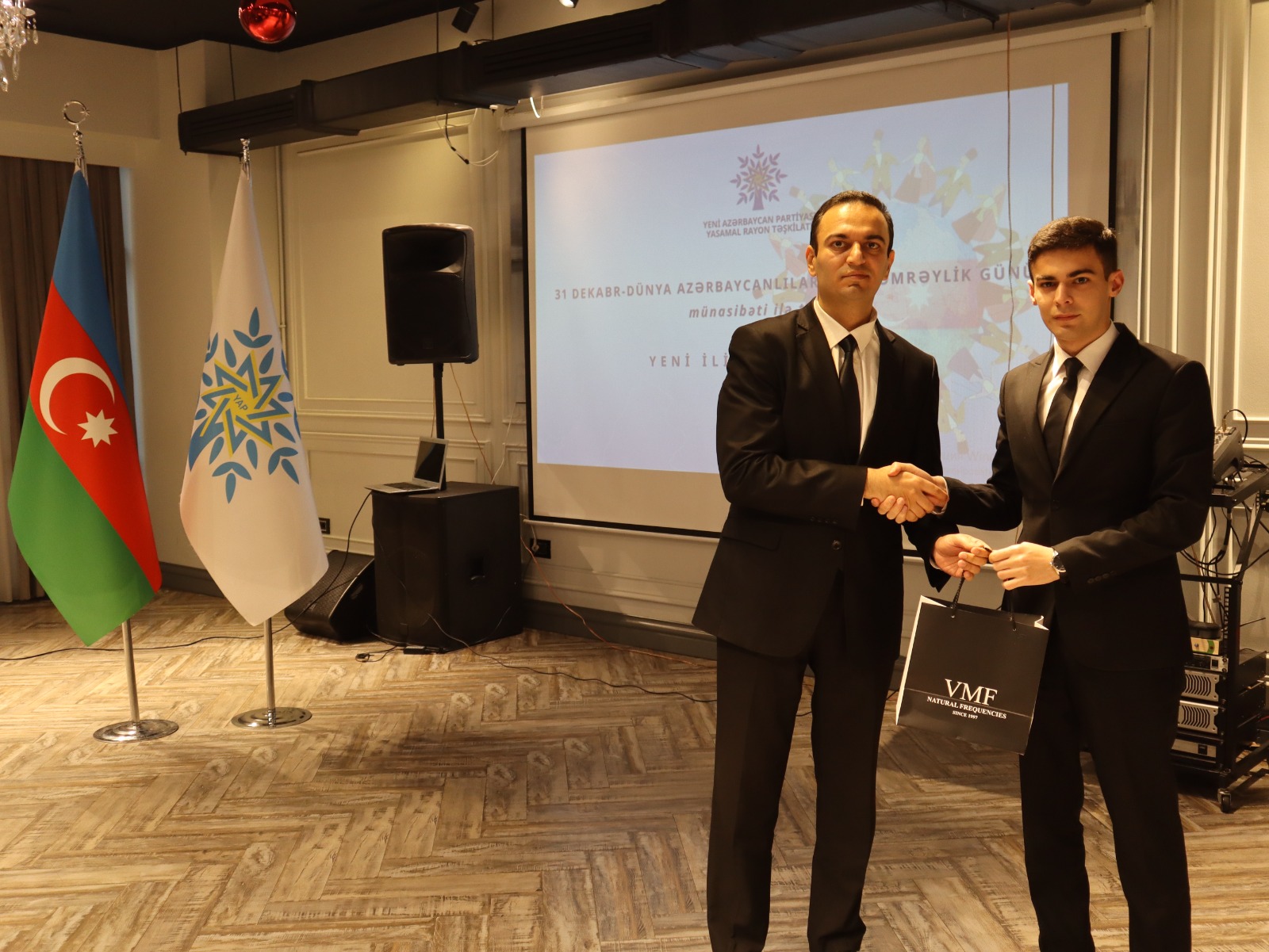 Yeni Azərbaycan Partiyasının (YAP) Yasamal rayon təşkilatı tərəfindən “Konstitusiya və Suverenlik İli” çərçivəsində “31 Dekabr-Dünya Azərbaycanlılarının Həmrəylik Günü” münasibəti ilə tədbir keçirilib. Tədbirdə Yeni Azərbaycan Partiyası Yasamal rayon təşkilatının sədri Bəxtiyar Nəbiyev, YAP Mərkəzi Aparatının İnformasiya texnologiyaları və ictimaiyyətlə əlaqələr şöbəsinin müdiri Nurlan Qələndərli, partiyanın Gənclər Birliyinin sədri Bəxtiyar İslamov, rayon təşkilatının və partiyanın sosial media üzrə nümayəndələri, YAP Yasamal rayon təşkilatının aktiv gəncləri və fəalları iştirak ediblər.