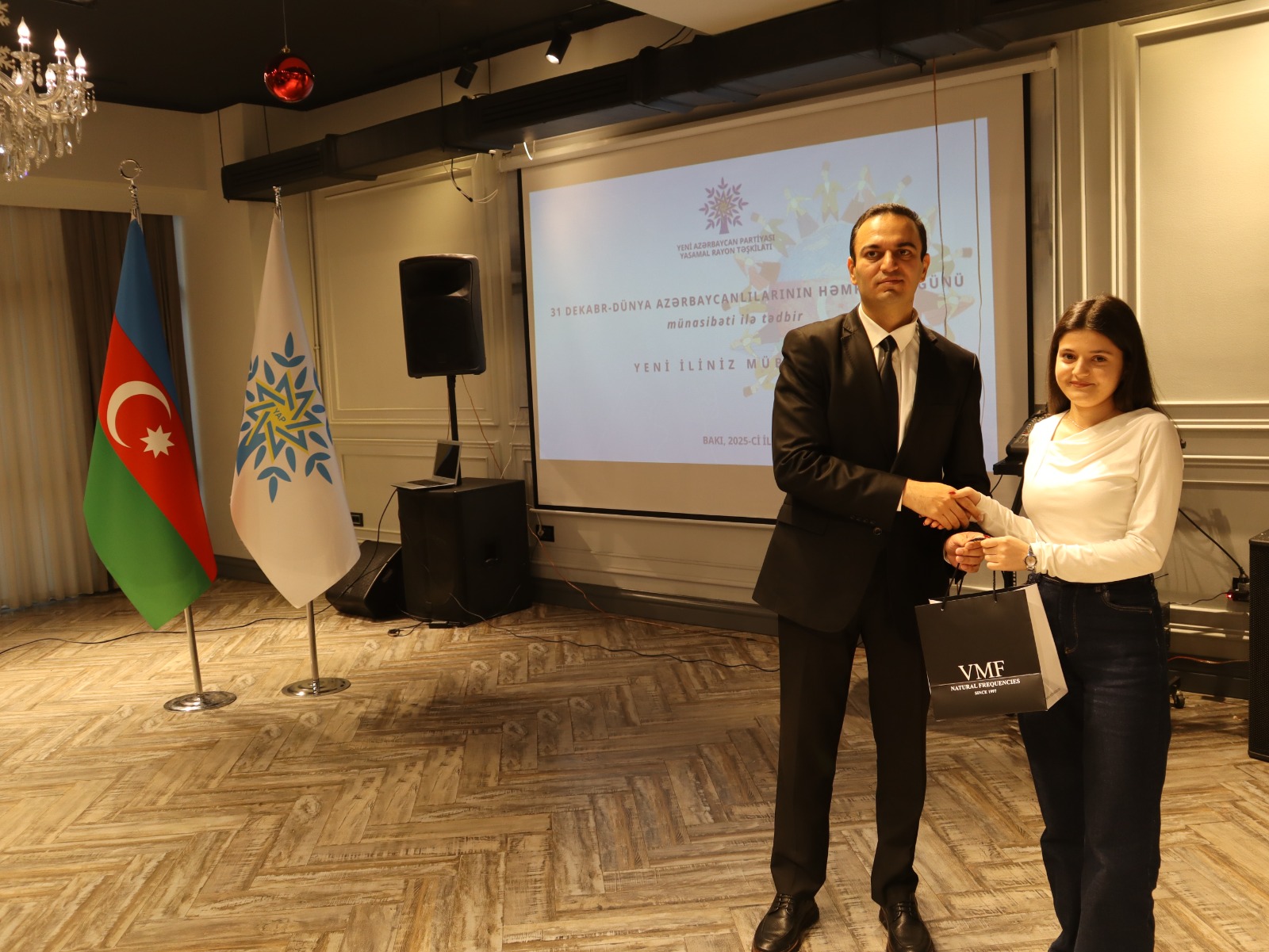 Yeni Azərbaycan Partiyası Gənclər Birliyinin sədri Bəxtiyar İslamov çıxış edərək bidirib ki, “Konstitusiya və Suverenlik İli” çərçivəsində 31 Dekabr – Dünya Azərbaycanlılarının Həmrəyliyi Günü milli birlik və dövlətçilik dəyərlərinin təntənəsi kimi xüsusi əhəmiyyət daşıyır. Bu əlamətdar gün bütün dünya azərbaycanlılarını vahid amal və məqsəd ətrafında birləşdirir. Əsası Ümummilli Lider Heydər Əliyev tərəfindən qoyulan və bu gün Prezdent İlham Əliyev tərəfindən inkişaf etdirilərək davam etdirilən dövlət siyasətinin əsas qayələrindən biri də milli həmrəyliyi əsas prioritetlərindən biri kimi daim diqqət mərkəzində saxlamasıdır. Xüsusilə gənclərin bu ideoloji xəttə cəlb olunması dövlət səviyyəsində strateji əhəmiyyət kəsb edir. Konstitusiyada təsbit olunmuş hüquq və azadlıqlar gənclərin hərtərəfli inkişafı üçün möhkəm hüquqi baza yaradır. Dövlət suverenliyinin qorunması gənclərin milli şüur və vətənpərvərlik ruhunda formalaşmasını zəruri edir. Dünya Azərbaycanlılarının Həmrəyliyi Günü bu baxımdan gənclər üçün mühüm ideoloji məktəb rolunu oynayır. Azərbaycan dövləti gənclərə yalnız sosial dəstək deyil, eyni zamanda siyasi etimad göstərir. Gənclərin ictimai-siyasi proseslərdə fəal iştirakı təşviq olunur. Dövlət gənclər siyasəti milli maraqlara söykənən sağlam vətəndaş mövqeyinin formalaşmasına xidmət edir. Suveren dövlətin gələcəyi məhz savadlı və milli düşüncəli gənclərlə bağlıdır. Bu reallıq dövlət siyasətində öz aydın ifadəsini tapır. Gənclərin beynəlxalq müstəvidə Azərbaycan həqiqətlərinin təbliğində rolu getdikcə artır. Bu fəaliyyət milli həmrəyliyin qlobal miqyasda möhkəmlənməsinə töhfə verir.