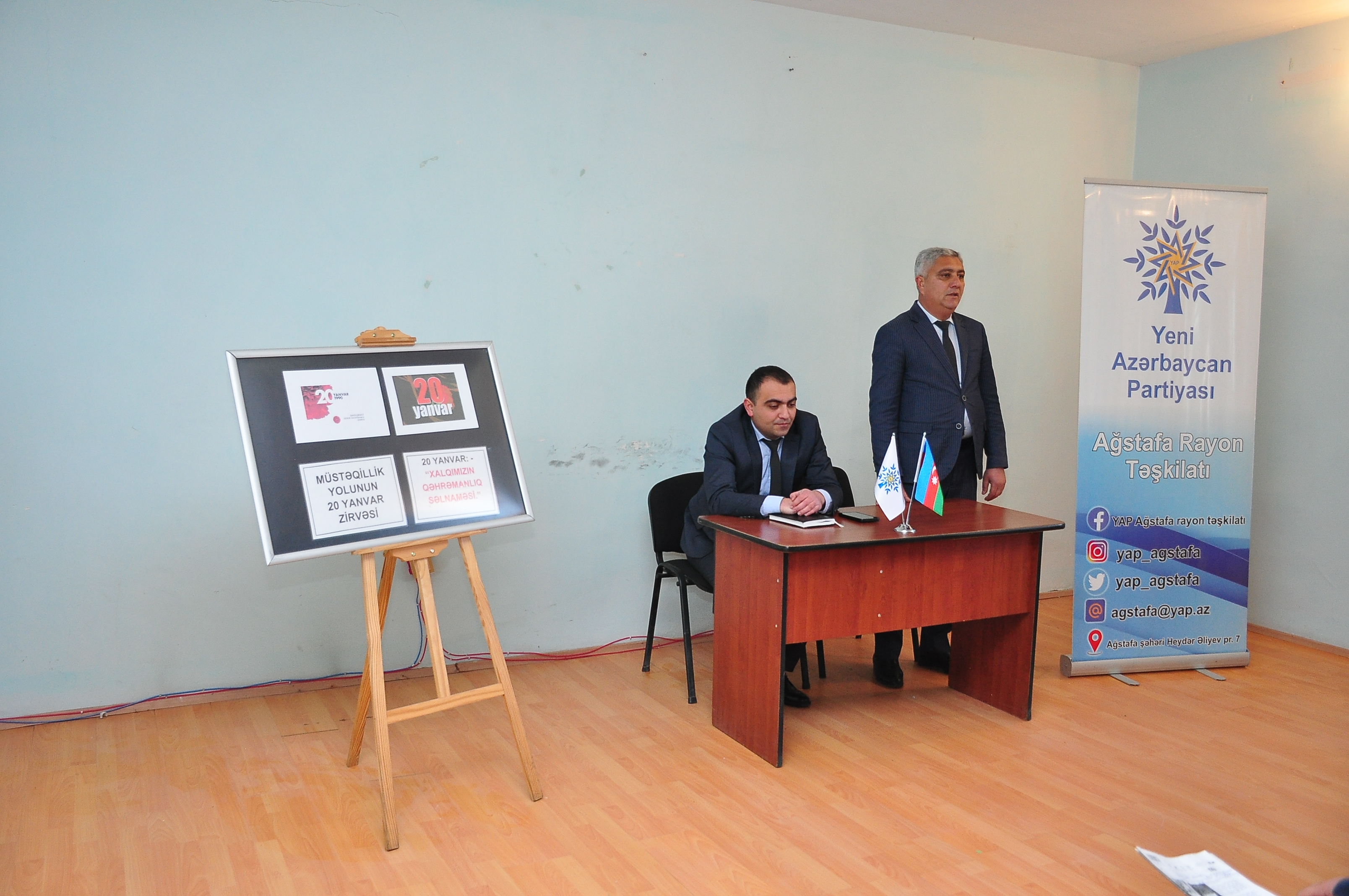 Tədbiri giriş sözü ilə açan YAP Ağstafa rayon təşkilatının əməkdaşı Yunis Eyyubov qeyd edib ki, 20 Yanvar faciəsini nə qədər böyük ağrı hissi ilə xatırlasaq da, xalqımızın azadlıq uğrunda mübarizə əzmini sındırmağın mümkünsüzlüyünü görəndə bundan böyük qürur hissi keçiririk. Həmin gün uzun illər imperiya əsarəti altında yaşayan xalqımız azadlığa qovuşmaq üçün canından belə keçməyə hazır olduğunu bir daha dünyaya nümayiş etdirdi.