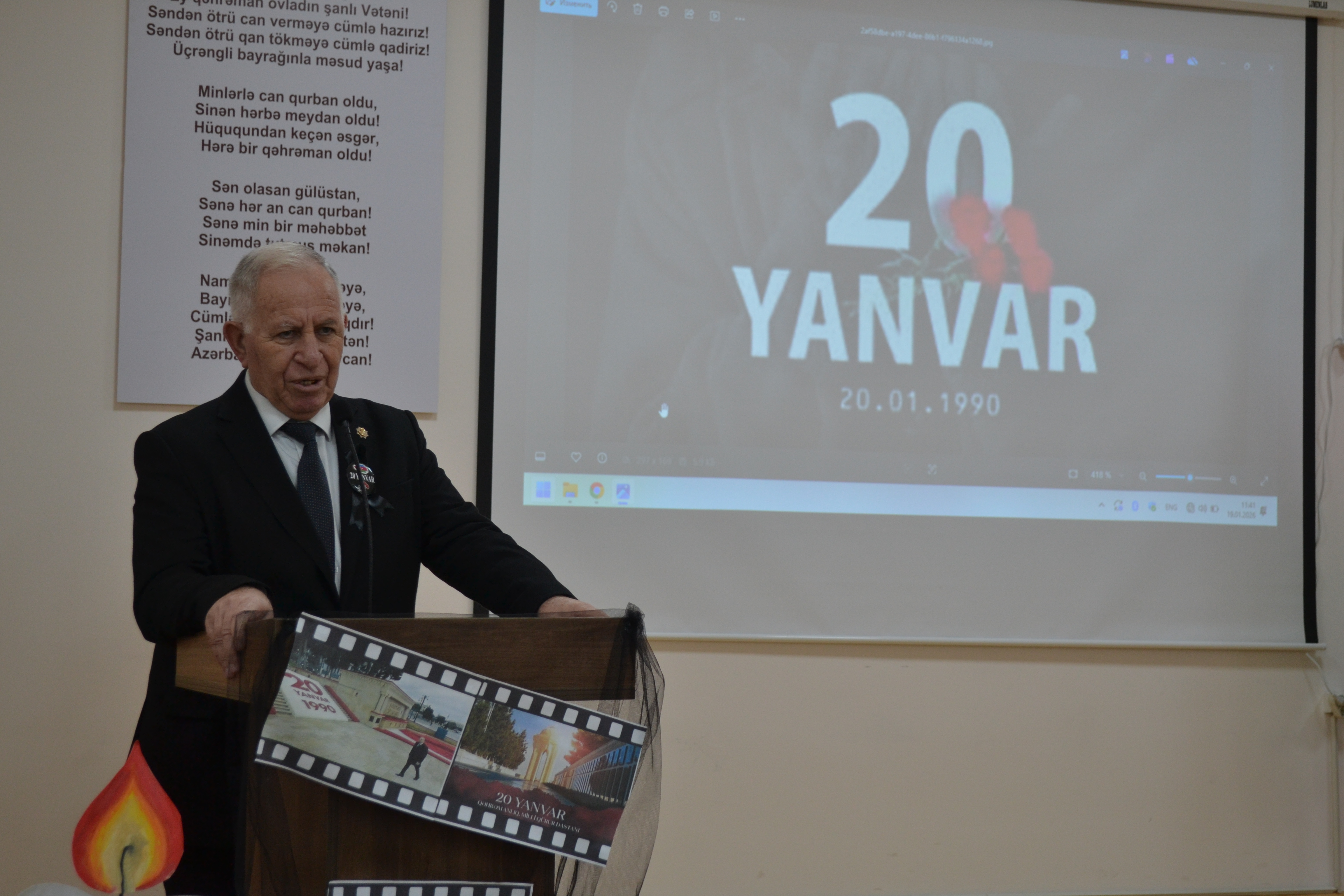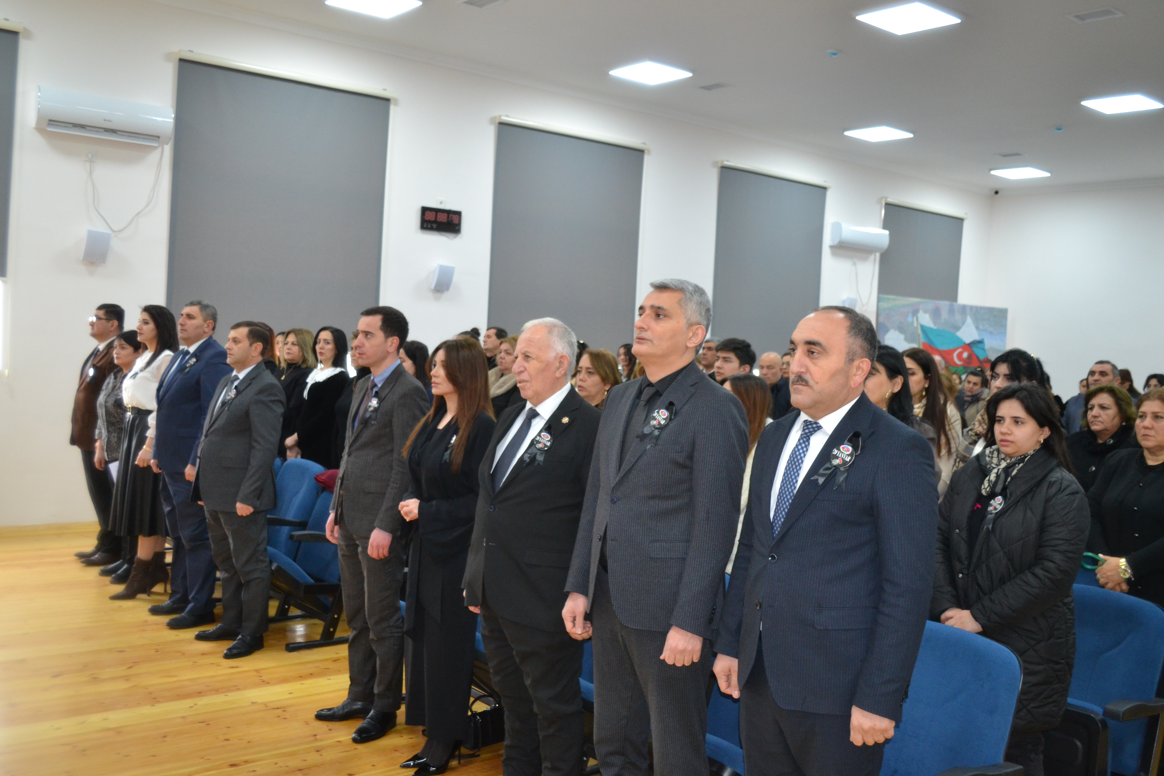 Sonra müasir, müstəqil Azərbaycan Respublikasının banisi Ümummilli Lider Heydər Əliyevin və Azərbaycan Respublikasının suverenliyi, ərazi bütövlüyü uğrunda canından keçən və 20 Yanvar şəhidlərimizin əziz xatirəsi bir dəqiqəlik sükutla yad edilib.Çıxış edən YAP Şəmkir rayon təşkilatının sədri Fəxrəddin Vəliyev qeyd edib ki, Azərbaycan xalqının yaddaşına əbədi həkk olunmuş 1990-cı ilin qanlı 20 Yanvar facisəindən artıq 36 il ötür. 36 il keçsə də törədilən bu vəhşilik öz tarixi mahiyyətini itirmir. Həmin gün azadlıq, istiqlaliyyət uğrunda küçələrə, meydanlara çıxan Azərbaycan xalqına qarşı törədilmiş ağlasığmaz terror aktı dəhşətli bir cinayət hadisəsi kimi tarixə düşmüşdür. Həmin gün müstəqillik istəyi ilə həmrəylik nümayiş etdirən dinc əhaliyə qarşı həyata keçirilən cəza tədbiri Beynəlxalq İnsan Haqları Bəyannaməsinin və bu sahədə qəbul olunmuş digər konvensiyaların müddəalarının kobud şəkildə pozulması demək idi. F.Vəliyev bildirib ki, Azərbaycana qarşı soyqırımı həyata keçirmiş Sovet rejiminə qarşı ən kəskin bəyənatı həmin ilin yanvar ayının 21-də Ulu Öndər Heydər Əliyev tərəfindən Moskvada Azərbaycanın daimi nümayəndəliyində mətbuat konfransı keçirərək verdi.