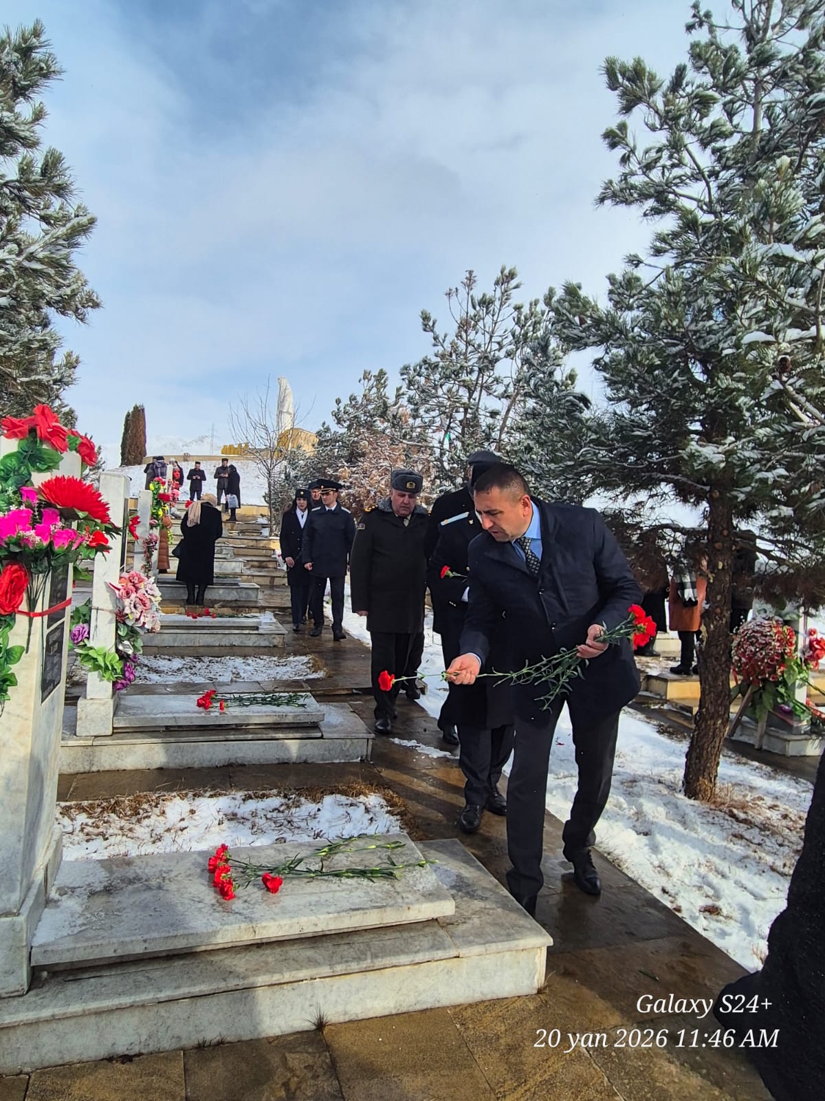 İştirakçılar əvvəlcə 20 Yanvar şəhidlərinin xatirəsini ehtiramla yad edib, abidə önünə gül dəstələri düzüblər. Rayon ərazisində matəm əlaməti olaraq Dövlət Bayrağı endirilib, Bakı vaxtı ilə saat 12:00-da Şəhidlərin xatirəsi bir dəqiqəlik sükutla yad edilib, nəqliyyat vasitələrində səs siqnalları verilib.