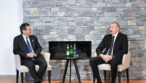 Azərbaycan Prezidenti İlham Əliyev yanvarın 21-də Davosda İsrailin Prezidenti İsxak Hersoqla görüşüb.SİA xəbər verir ki, söhbət zamanı İsxak Hersoqun Azərbaycana səfərləri və dövlət başçısı ilə görüşləri məmnunluqla xatırlanıb.Azərbaycan-İsrail münasibətlərinin müxtəlif sahələrdə uğurlu inkişafı vurğulanıb.İqtisadi, ticari, enerji və digər sahələrdə əməkdaşlığın genişləndirilməsi üçün yaxşı imkanların olduğu qeyd edilib.Azərbaycan və İsrail prezidentləri əməkdaşlığın perspektivləri ilə bağlı məsələləri müzakirə ediblər.