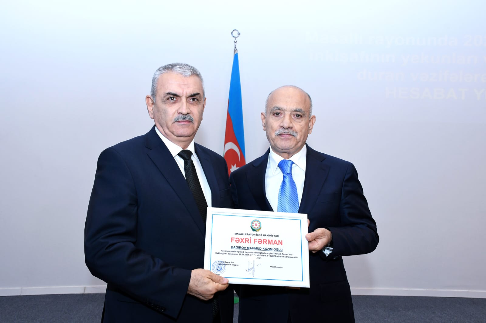 Masallı Rayon İcra Hakimiyyətinin başçısı Araz Əhmədov hesabat məruzəsi ilə çıxış edərək 2025-ci ildə rayonda görülmüş işlər, əldə olunmuş sosial-iqtisadi nəticələr və 2026-cı ildə qarşıda duran prioritet vəzifələr barədə ətraflı məlumat verib. Bildirib ki, Prezident İlham Əliyevin rəhbərliyi ilə 2025-ci il ölkəmiz üçün inkişaf və tərəqqi ili olub, aparılan ardıcıl islahatlar nəticəsində iqtisadi sabitlik möhkəmlənib, əhalinin rifah halı yüksəlib. Bu inkişaf Masallı rayonunda da genişmiqyaslı abadlıq-quruculuq işlərinin aparılmasına, sosial infrastrukturun yaxşılaşdırılmasına imkan yaradıb.