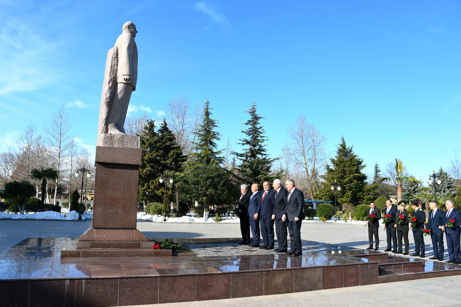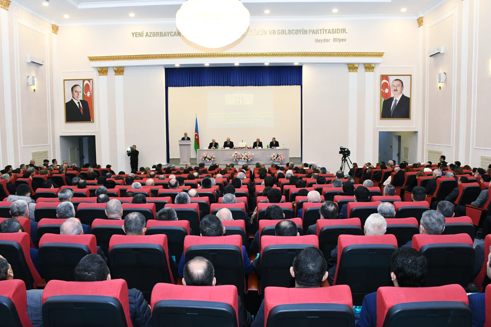 Hesabat yığıncağından əvvəl Azərbaycan xalqının Ümummilli Lideri Heydər Əliyevin abidəsi ziyarət olunub, önünə gül dəstələri qoyulub. Tədbir Azərbaycan Respublikasının Dövlət Himninin səsləndirilməsi ilə başlayıb, Vətən uğrunda canlarından keçmiş şəhidlərin xatirəsi bir dəqiqəlik sükutla yad edilib.