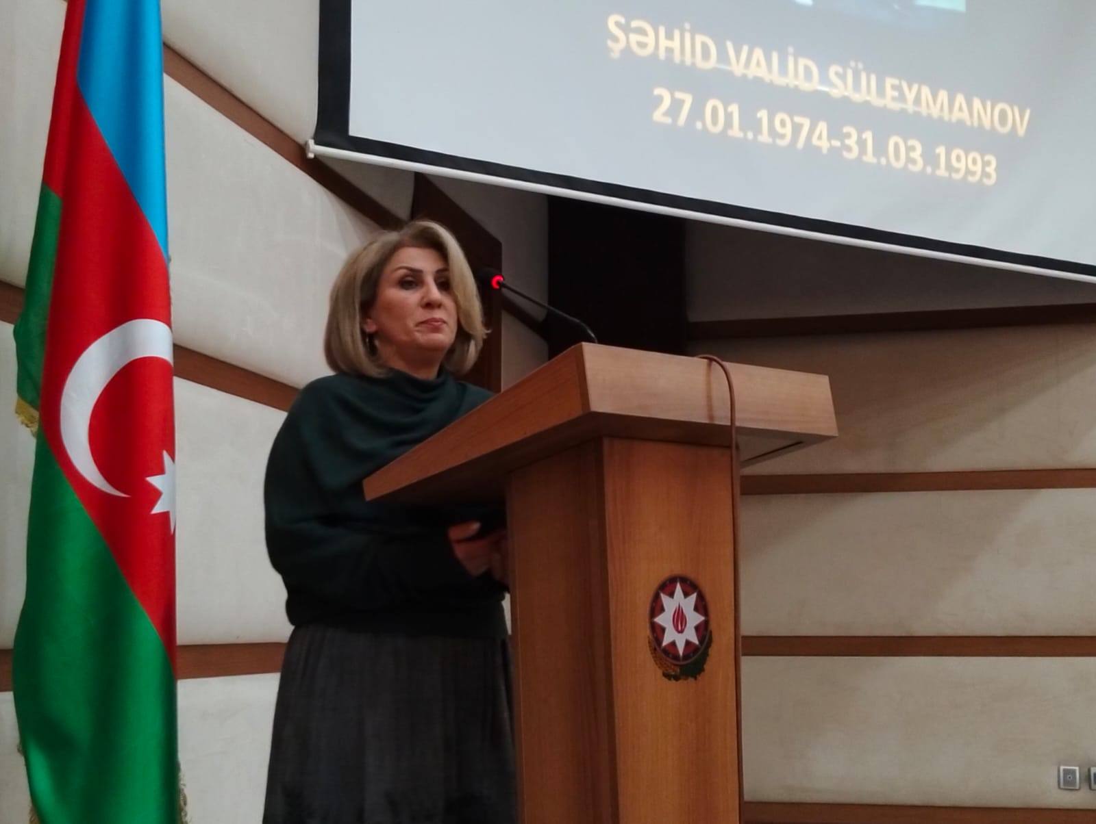 Mərkəzinin direktoru ReyhanəSadıxova tədbirin giriş sözündə dedi:-Birinci Qarabağ müharibəsi şəhidləri ilk müstəqil addımlarını atan dövlətimizin qorunması və onun əbədi yaşadılması yolunda sözün əsl mənasında qəhrəmanlıq göstərdilər. Onların xatirəsini daim ehtiramla anılması gənc nəsil üçün böyük örnək olar.
