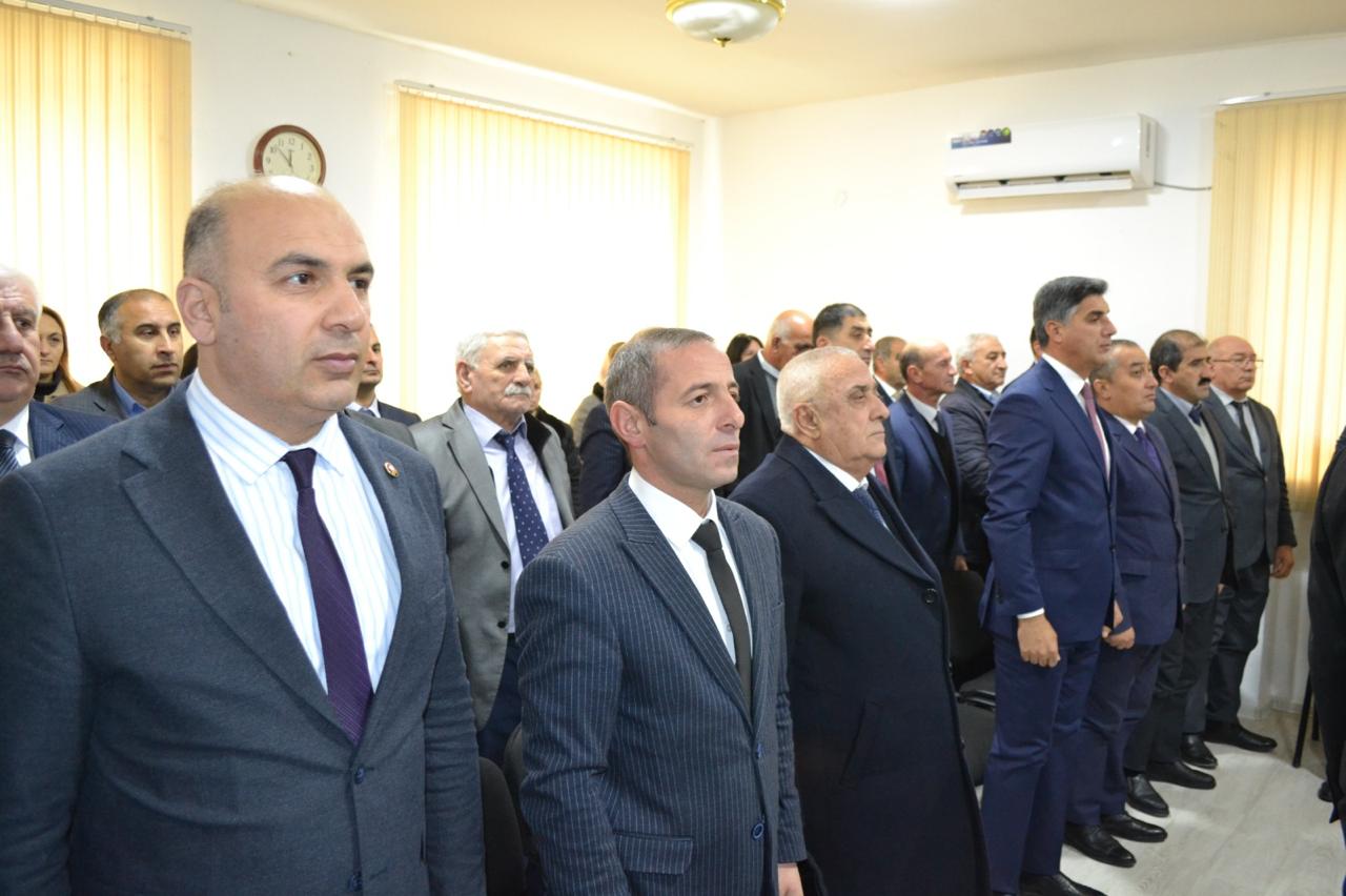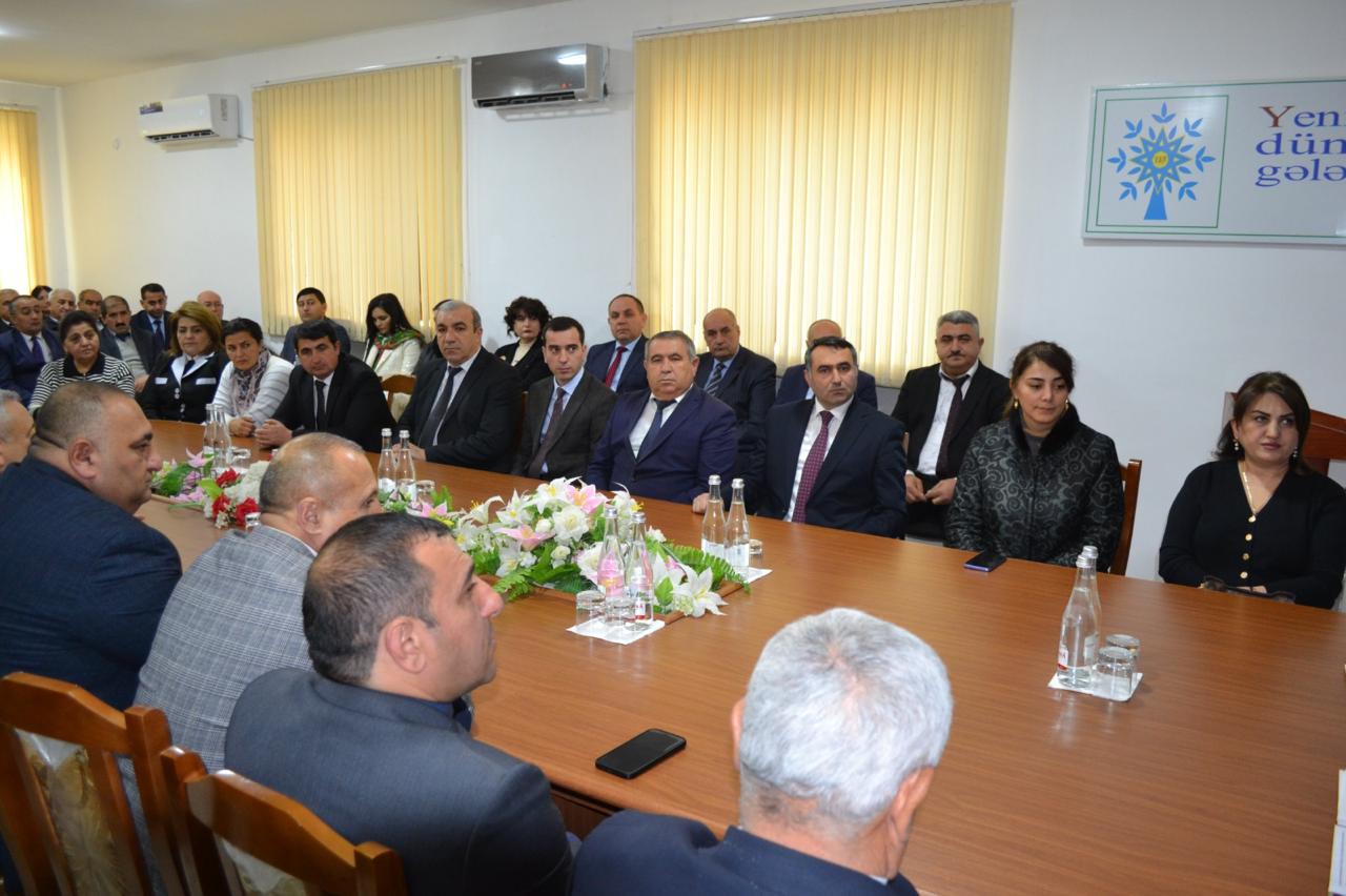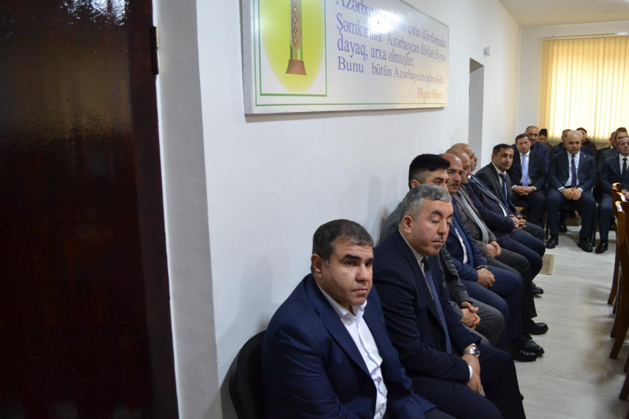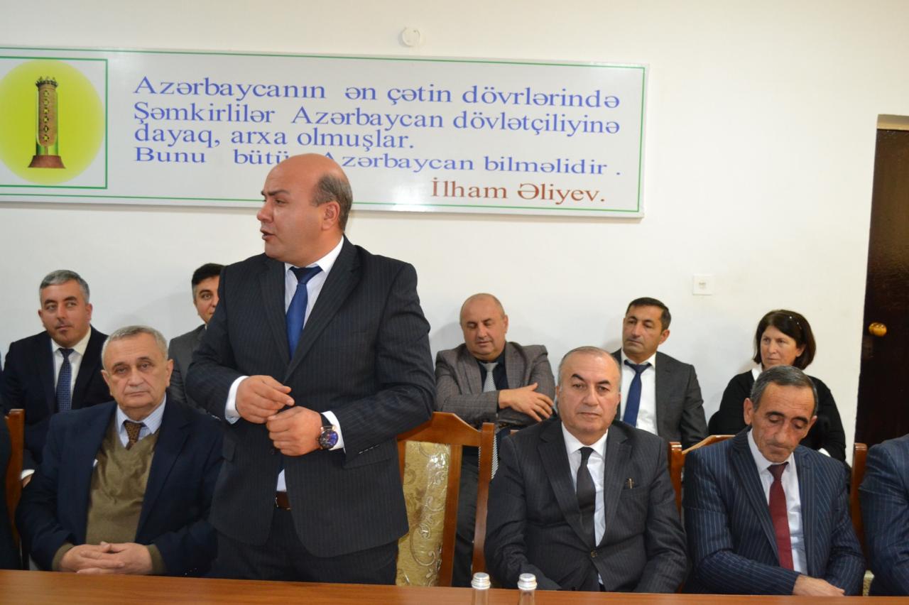 Sonra tədbiri giriş sözü ilə açan Yeni Azərbaycan Partiyası Şəmkir rayon təşkilatının sədri Fəxrəddin Vəliyev qeyd etmişdir ki, “Müasir Azərbaycan dövlətinin qurucusu, ölkəmizin milli dövlətçilik ənənələrinin qurulmasında və inkişafında misilsiz xidmətləri olan dahi rəhbər, Ümummilli Lider Heydər Əliyev tərəfindən müəyyənləşdirilən siyasi kurs bu gün ölkə Prezidenti cənab İlham Əliyev tərəfindən uğurla davam etdirilir. Cənab Prezident İlham Əliyev ölkəmizə rəhbərlik etdiyi bu illər ərzində Ulu Öndər Heydər Əliyevin ideyalarına və siyasi strategiyasına daim sadiq qalaraq, onları yeni çalarlarla və müasir dövrün tələblərinə uyğun şəkildə uğurla davam etdirir. 30 ilə yaxın davam edən Dağlıq Qarabağ münaqişəsi məhz Müzəffər Ali Baş Komandan cənab İlham Əliyevin qətiyyəti, cəsarəti və siyasi iradəsi sayəsində öz həllini tapıb. Bizə bu günləri yaşadan, tarixi Zəfərimizə imza atan cənab Prezidentə hər zaman minnətdarıq. Hazırda qarşıda dövlət başçısı İlham Əliyevin rəhbərliyi ilə Qarabağda həyatı dirçəltmək, bərpa etmək kimi mühüm və şərəfli bir vəzifə dayanır.