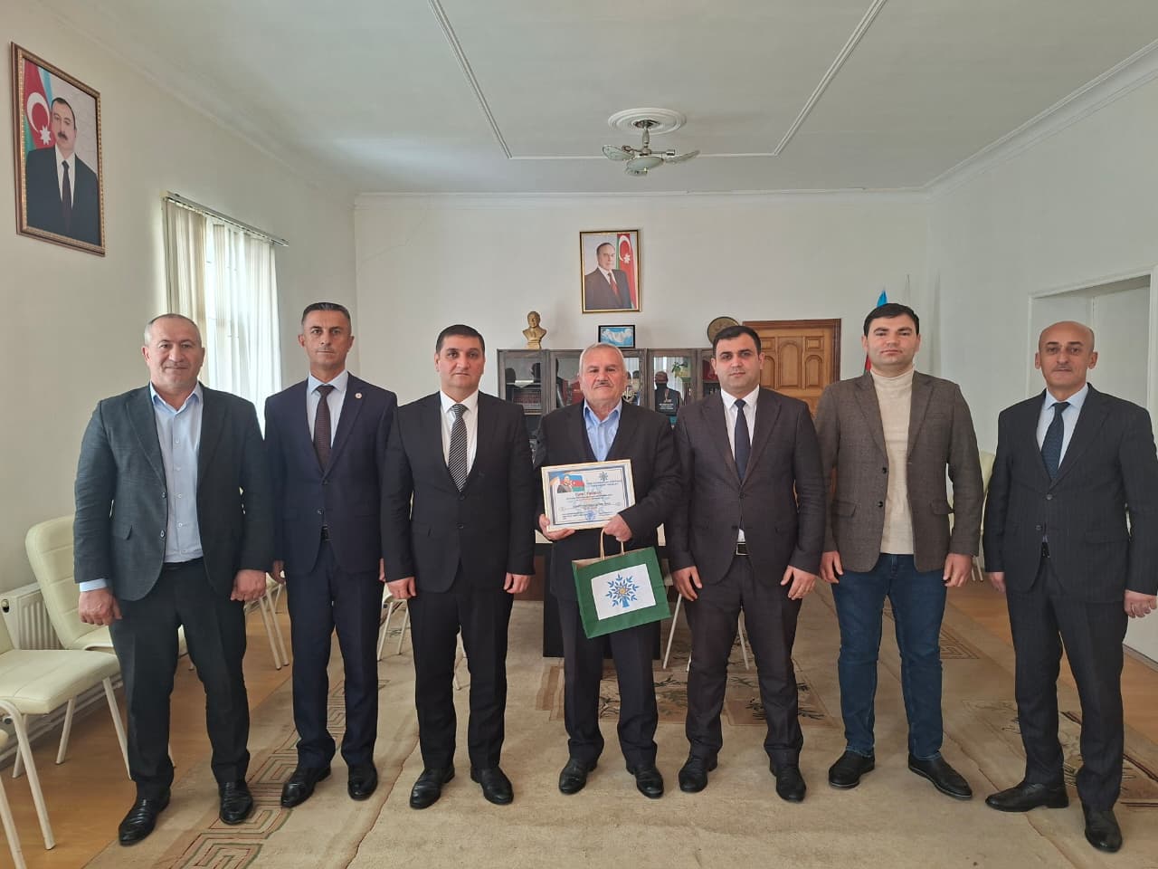 Sonda Hacibala Ağayev rayon təşkilatının ictimai-siyasi həyatında fəal iştirakına və 70 illik yubileyi münasibətilə Fəxri Fərman və xatirə hədiyyəsi ilə təltif olundu.