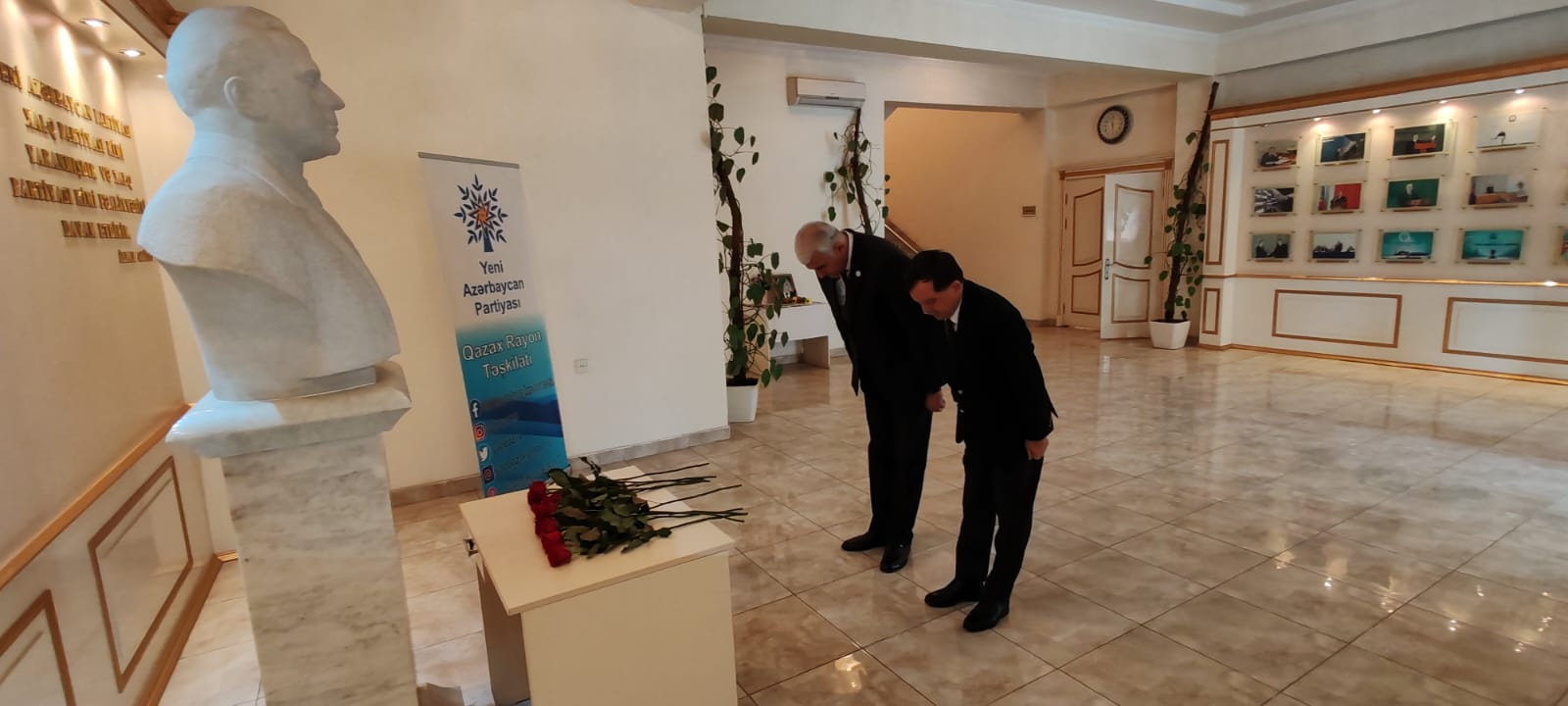 Əvvəlcə Ümummilli Lider Heydər Əliyevin büstü ziyarət edilib, önünə tər güllər düzülüb.
