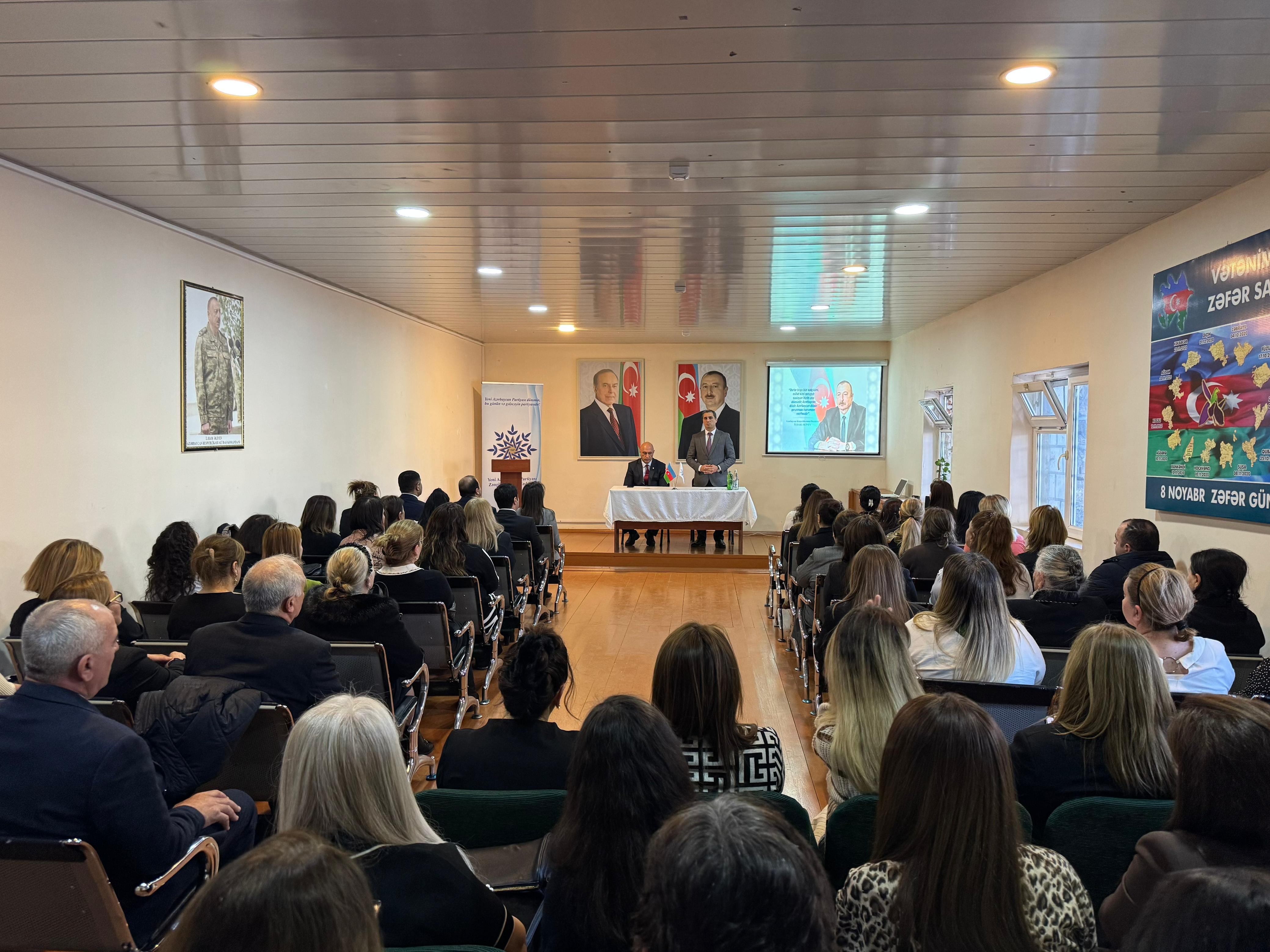 Rayon təşkilatının sədri bildirib ki, bu gün Prezident İlham Əliyev Ulu Öndərin dil siyasətini müasir dövrün çağırışlarına uyğun şəkildə uğurla davam etdirir. Dövlət başçısı dəfələrlə çıxışlarında Azərbaycan dilinin saflığının qorunmasının vacibliyini vurğulamış, dilimizin yad təsirlərdən qorunmasını milli məsələ kimi dəyərləndirmişdir. Cənab Prezidentin çıxışlarında Azərbaycan dilində səlis, zəngin və yüksək üslubda danışması da gənclər üçün əsl nümunədir. Bu, sübut edir ki, ana dilinə sevgi təkcə sözlə deyil, şəxsi nümunə ilə aşılanmalıdır.