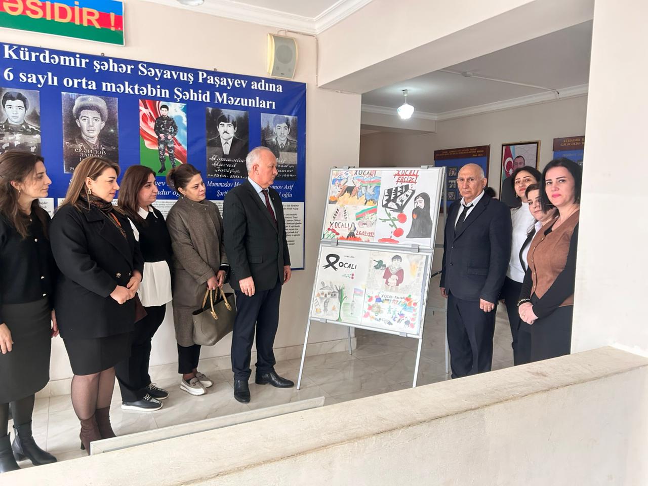 25 fevral 2026-cı il tarixdə Kürdəmir şəhər Səyavuş Paşayev adına 6 saylı tam orta məktəbində YAP Kürdəmir rayon təşkilatının “C.Cabbarlı küçəsi 1” ərazi partiya təşkilatında Xocalı soyqırımının 34-cü ildönümünə həsr olunmuş tədbir keçirilib. Tədbirdə YAP Kürdəmir rayon təşkilatının sədr müavini Elxan Qafarov və partiya üzvləri iştirak edib. Əvvəlcə tədbir iştirakçıları məktəbin giriş zalında olan Ulu Öndər Heydər Əliyevin büstünün önünə gül dəstələri düzüblər. 26 Fevral Xocalı soyqırımı adlı foto sərgisinə baxış oldu.