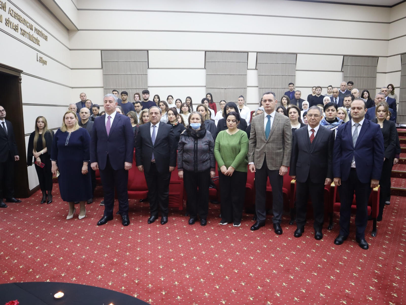 YAP Yasamal rayon təşkilatında baş tutuan tədbir Azərbaycan Respublikası Dövlət Himninin səsləndirilməsi ilə başlayıb. Sonra Ulu öndər Heydər Əliyevin, Respublikamızın suverenliyi və ərazi bötövlüyü uğrunda canlarını qurban vermiş şəhidlərimizin əziz xatirəsi bir dəqiqəlik sükutla yad olunub.