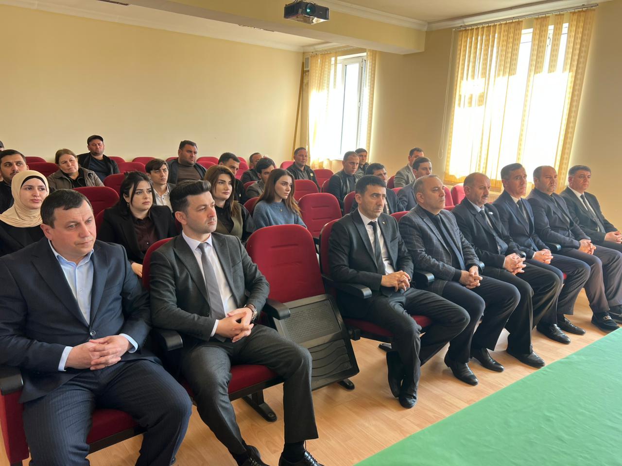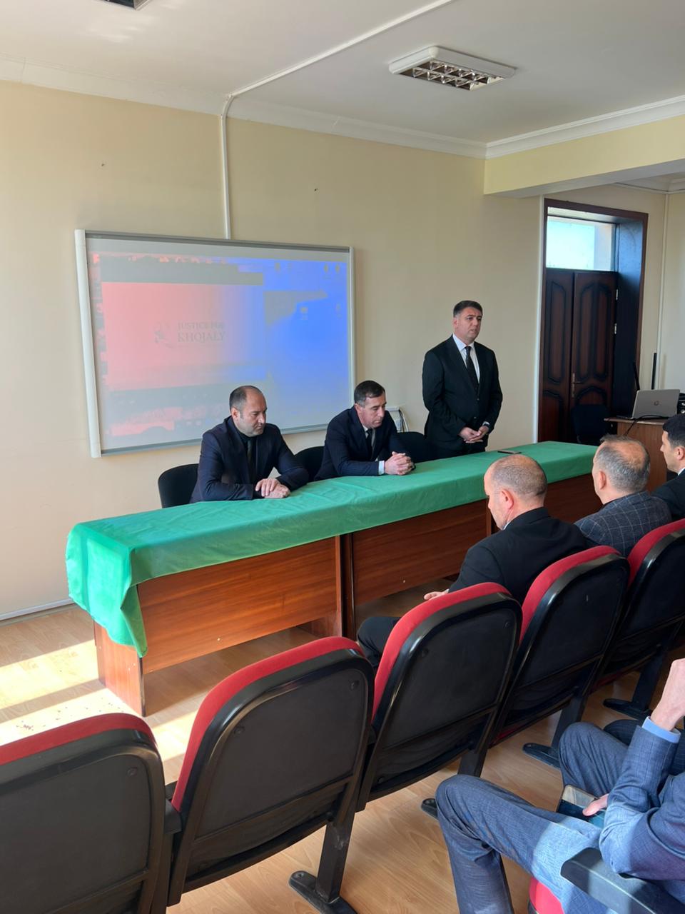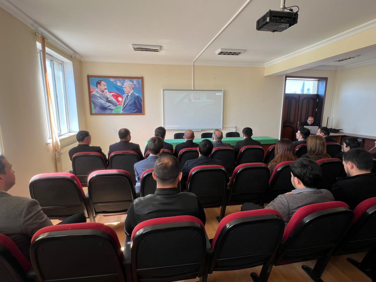 Tədbirdə Ümummilli Lider Heydər Əliyevin, ölkəmizin ərazi bütövlüyü uğrunda canlarını fəda etmiş şəhidlərimizin əziz xatirələri bir dəqiqəlik sükutla yad olunub. Sonra Xocalı soyqırımının 34-cü ildönümü ilə əlaqədar “Xocalı Nişanəsi” bədii-sənədli filmi nümayiş edilib.