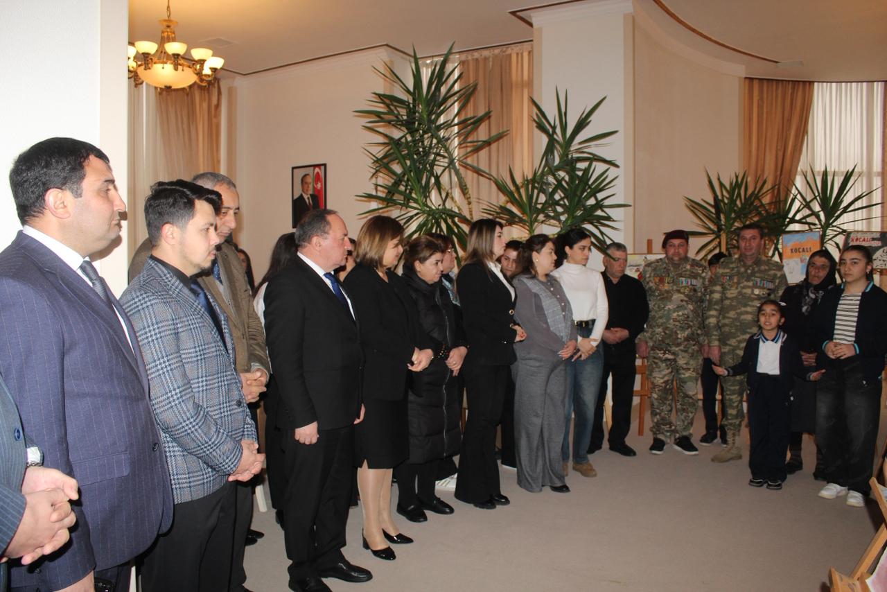 İlk öncə Xocalı faciəsinə dair məktəblilərin əl işlərindən ibarət olan sərgiyə baxış keçirilib, faciəyə həsr olunmuş şeirlər səsləndirilib.