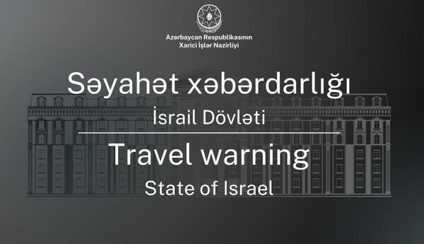 Bildirilib ki, hazırda İsraildə olan vətəndaşlarımızdan təhlükəsizlik vəziyyətini diqqətlə izləmələri, yerli hakimiyyət orqanlarının göstəriş və tövsiyələrinə riayət etmələri, kütləvi toplaşma yerlərindən uzaq durmaları və şəxsi təhlükəsizlik tədbirlərini gücləndirmələri xahiş olunur.