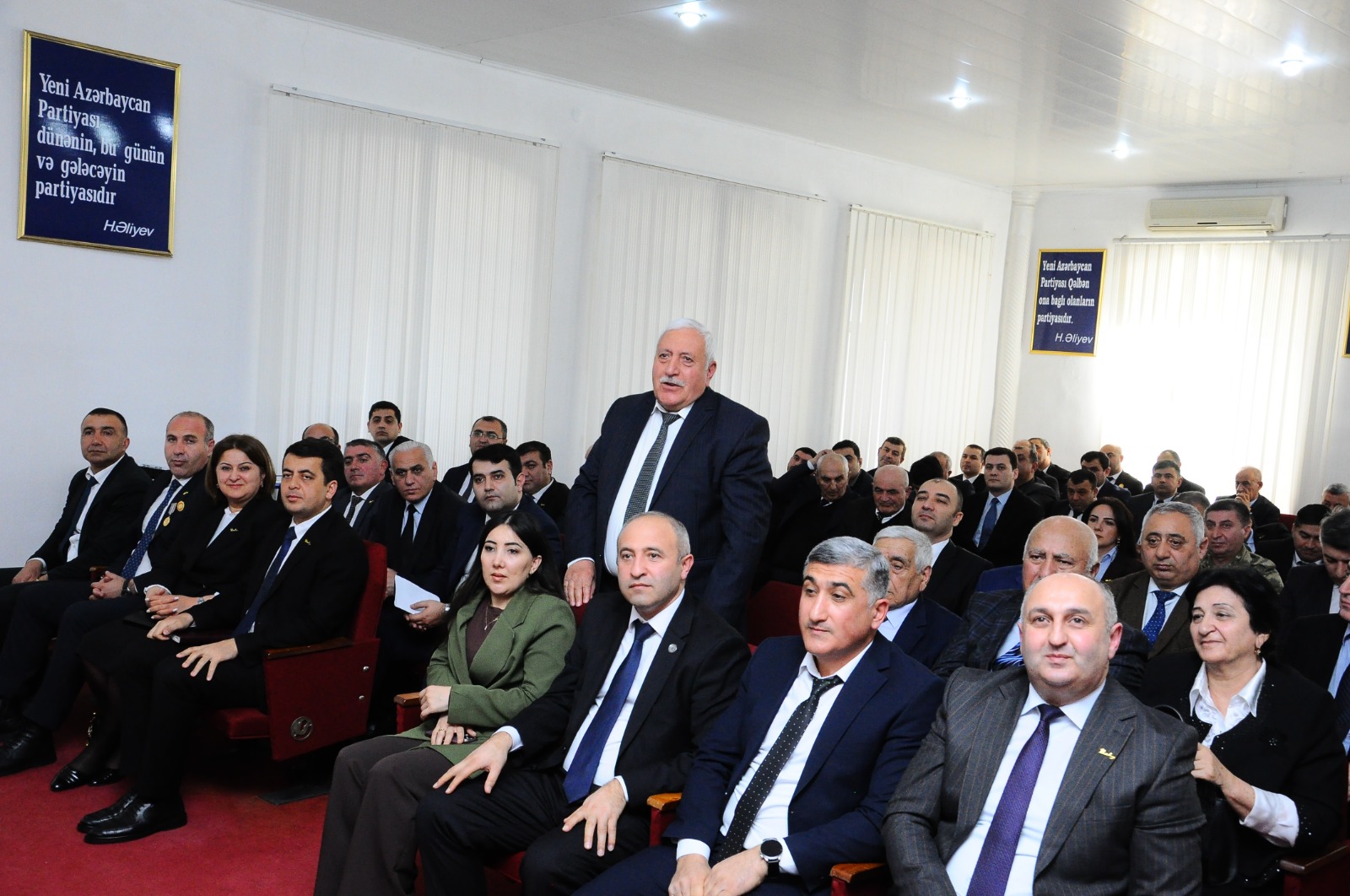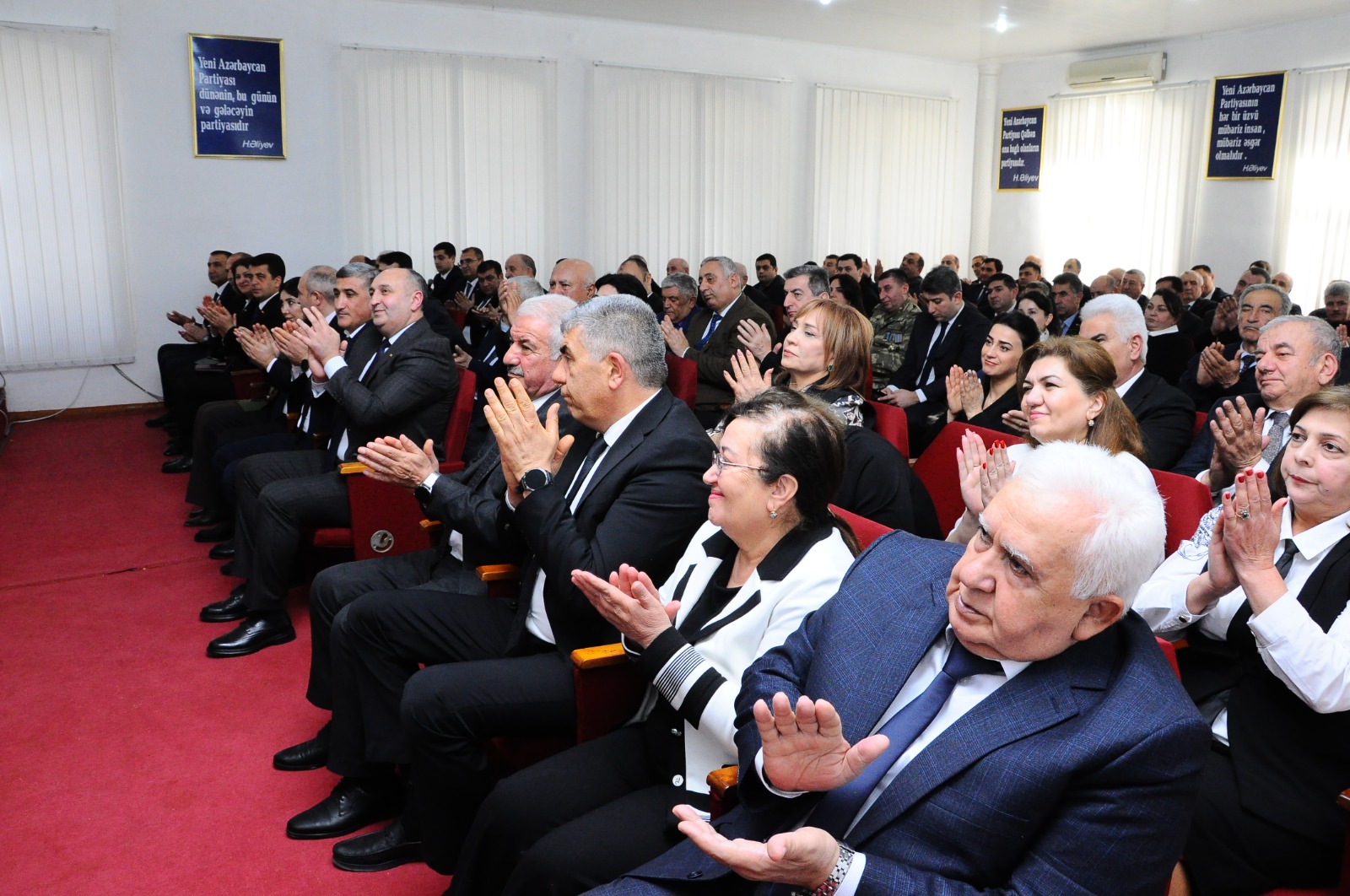 Partiya veteranı Ofeliya Rəhimova, YAP Gənclər Birliyinin üzvü Fərid Dünyamalıyev və digərləri çıxış edərək Ümummilli Lider Heydər Əliyev ideyalarının uğurla davam etdirilməsi ilə Yeni Azərbaycan Partiyasının Sədri, Prezident İlham Əliyevin rəhbərliyi altında Azərbaycanın mühüm uğurlar qazandığını, yüksək zirvələri fəth etdiyini və xalqımızın tarixi zəfərlərə nail olduğunu bildiriblər. Natiqlər bütöv bir xalqın istəyi ilə yaranan Yeni Azərbaycan Partiyasının uğurlu fəaliyyətindən bəhs ediblər.