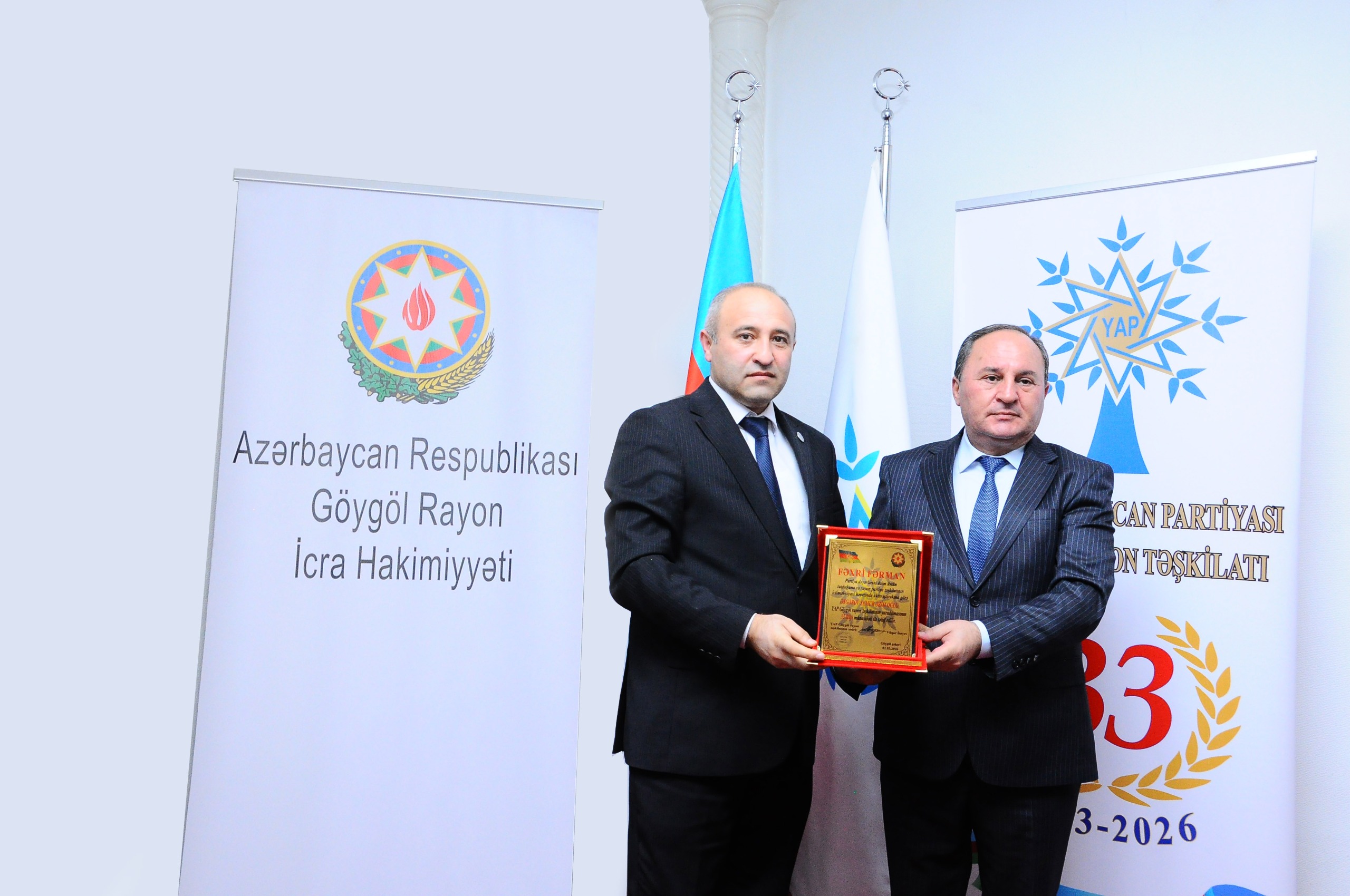 Tədbirin sonunda rayon partiya təşkilatının ictimai-siyasi həyatında fərqlənən partiya fəallarından bir qrupuna YAP Göygöl rayon təşkilatının “Fəxri fərmanları” və partiya sıralarına yeni qəbul olmuş bir qrup şəxsə üzvlük vəsiqələri təqdim edilib.