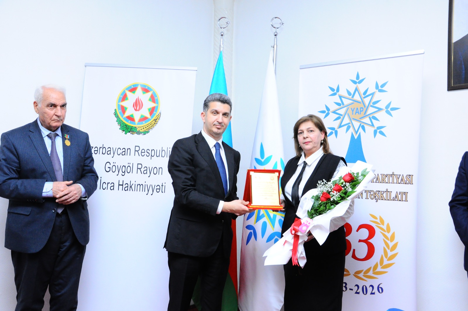 Göygöl Rayon İcra Hakimiyyətinin başçısı Vüqar Novruzov giriş nitqi ilə çıxış edərək YAP Göygöl rayon təşkilatının yaranmasının 33 illiyi münasibətilə tədbir iştirakşılarını təbrik edib və Yeni Azərbaycan Partiyasının ölkəmizin hər bir uğurunda xüsusi payı olduğunu vurğulayıb. Partiyanın keçdiyi şərəfli yoldan bəhs edərək, ilk gündən tutduğu yola, əqidəyə sadiqlik nümayiş etdirməsi, onun ümumxalq partiyası kimi nüfuz qazanmasını şərtləndirdiyini bildirib. Qeyd edib ki, Yeni Azərbaycan Partiyası öz sıralarında cəmiyyətdə böyük nüfuza malik olan insanları birləşdirir, xalqın arzu və istəklərinin həyata keçirilməsinə öz töhfələrini verir. Vüqar Novruzov Prezident İlham Əliyevin müdrik idarəçiliyi ilə qəbul edilən strateji qərarların regionda sabitliyin qorunmasına, dövlət müstəqilliyinin daha da möhkəmləndirilməsinə böyük töhfələr verdiyini bildirib, sürətlə inkişaf edən ölkəmizi uğurlu gələcəyə aparan bu yolda hər bir Azərbaycan vətəndaşı Yeni Azərbaycan Partiyasının Sədri, Prezident İlham Əliyevin siyasi kursunu dəstəklədiyini və böyük əzmlə dövlətin və xalqın mənafeyi naminə səy göstərdiyini diqqətə çatdırıb.
