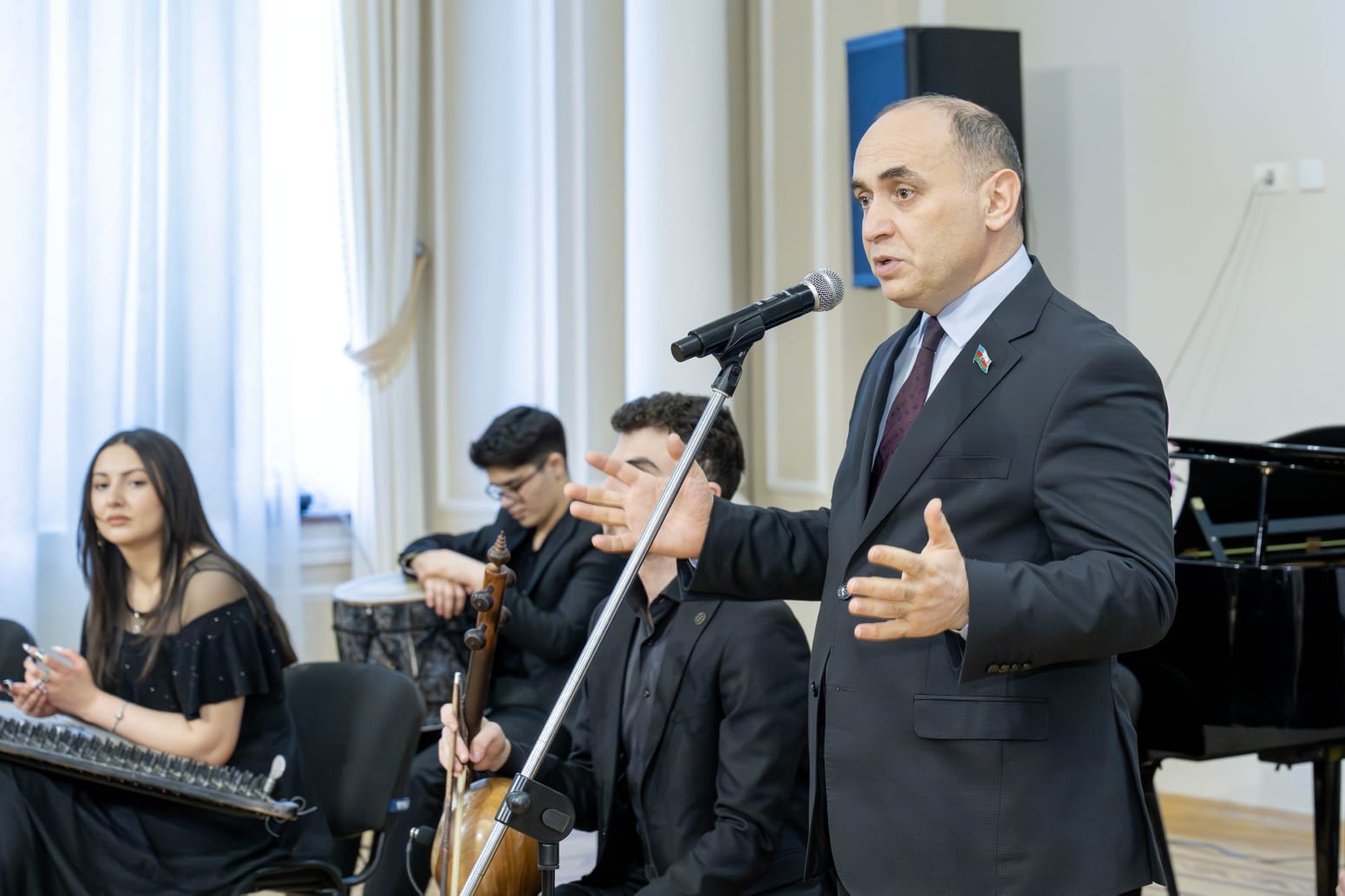 Milli Məclisin deputatı Aydın Mirzəzadə isə öz çıxışında Azərbaycan xanımlarını təbrik etmiş, “Zəfər yurdu ilə zərif nəğmələr” konsert proqramının həyata keçirilməsini yüksək qiymətləndirərək, “İncəsənətin Tərəqqisinə Dəstək” İctimai Birliyini uğurlu fəaliyyəti münasibətilə təbrik etmişdir.