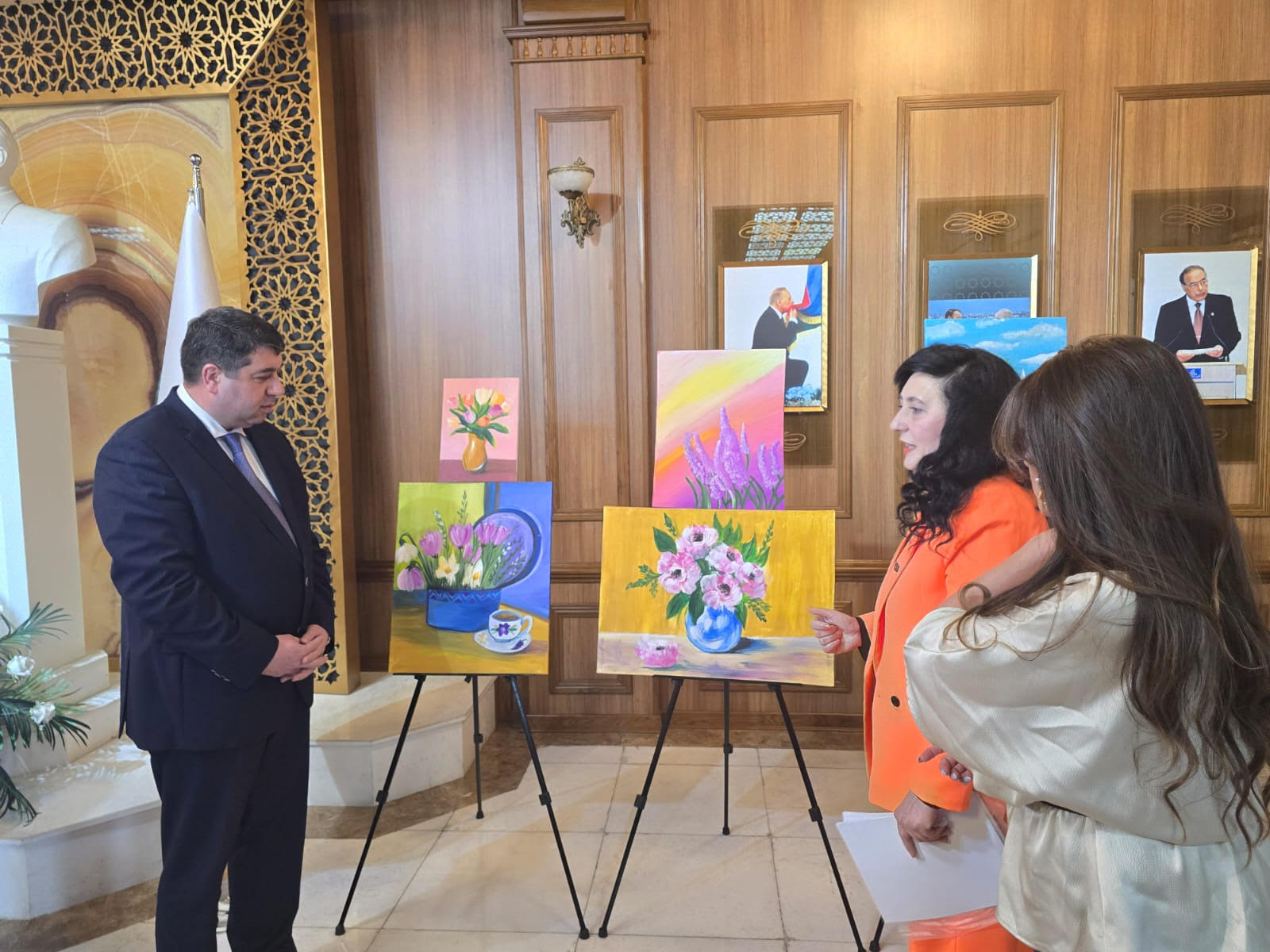 Beynəlxalq Qalereyanın direktoru Elnurə İsgəndərova sərginin təşkilinə görə başda sədr Bəxtiyar Nəbiyev olmaqla YAP Yasamal rayon təşkilatına öz minnətdarlığını bildirib. Çıxışda rəssamların təqdim etdikləri əsərlər və sərginin yüksək səviyyədə təşkilindən bəhs olunub. Vurğulanıb ki, sərgidə nümayiş olunan sənət əsərlərinin məna və məzmunu Azərbaycan qadınının sənətə bağlılığından xəbər verir. Çıxışın sonunda əlamətdar gün münasibəti ilə xanımlar təbrik edilib.