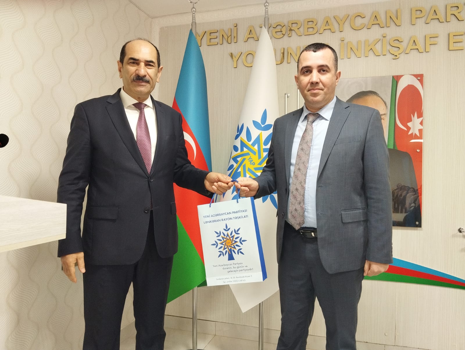 Sonda Yeni Azərbaycan Partiyası Lənkəran rayon təşkilatının ictimai-siyasi həyatında işgüzarlıq nümunəsini göstərən bir qrup partiya fəalına qiymətli hədiyyələr təqdim edildi , YAP sıralarına yeni qəbul olunmuş gənclərə partiya üzvlük vəsiqələri verildi.