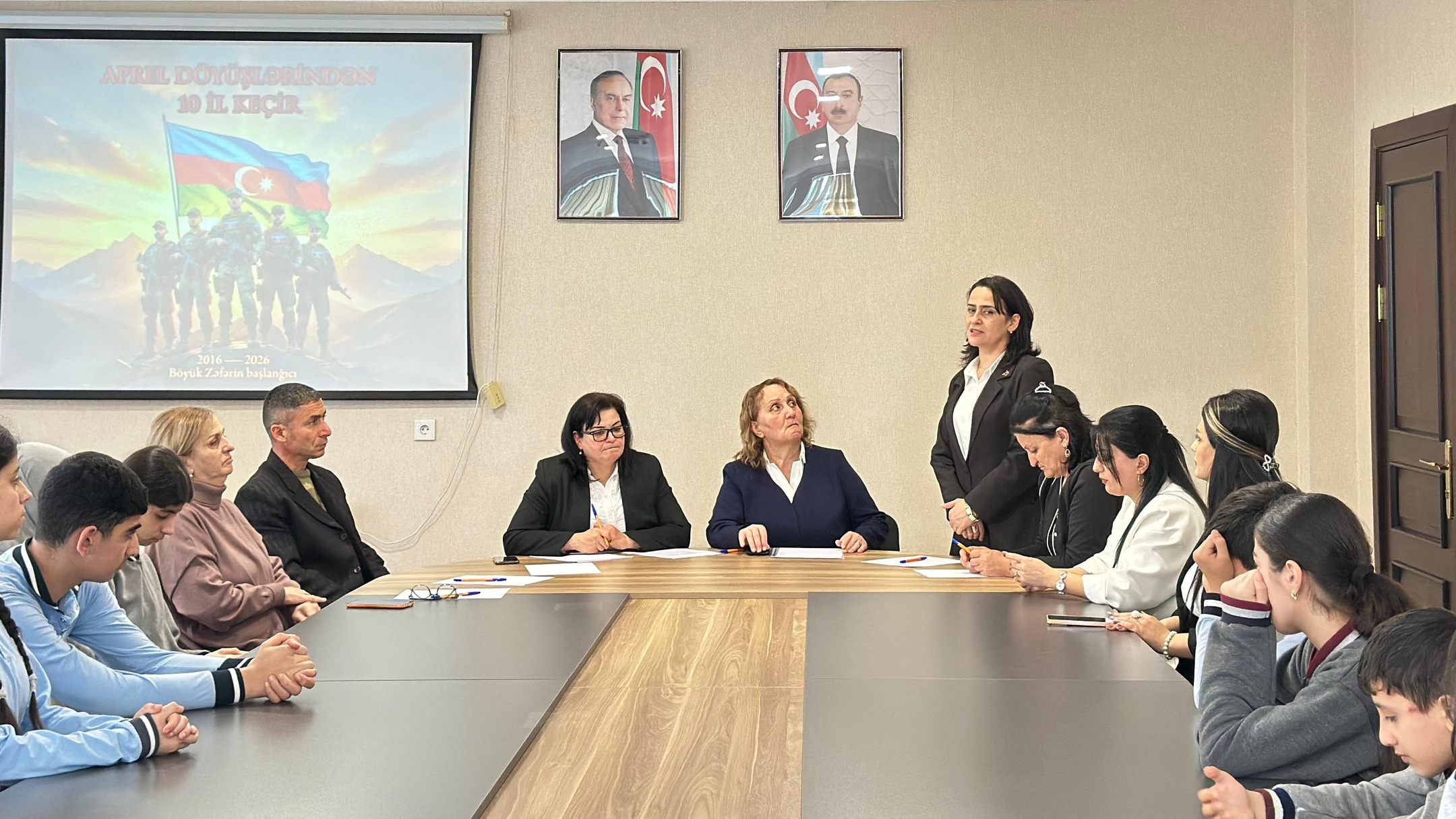 Ordumuzun zəfər əzəmətini göstərən Aprel döyüşləri barədə danışan Mərkəzin direktoru Kübra Səmədova dedi:- Aprel ayının birində başlanan döyüşlərdə Azərbaycan ordusu 4 günə möhtəşəm qələbə qazandı. Həmin vaxtdan 10 il ötür. Müharibə zamanı qəhrəman əsgər, gizir və zabitlərimiz təcavüzkar Ermənistan ordusuna ağır zərbələr endirərək 2 min hektardan artıq ərazini işğaldan azad ediblər. Goranboy rayonu və Naftalan şəhərinə təhlükə yarada biləcək Talış kəndi ətrafındakı yüksəkliklər, eləcə də digər yaxın məntəqələr təcavüzkar düşməndən tam təmizlənib. Həmçinin Horadiz şəhərinin düşmən təhlükəsindən qorunması məqsədilə Füzuli rayonu istiqamətində yerləşən, geniş ərazini nəzarətdə saxlamaq imkanı verən strateji əhəmiyyətli "Lələ təpə" yüksəkliyinə üçrəngli bayrağımız sancılıb.