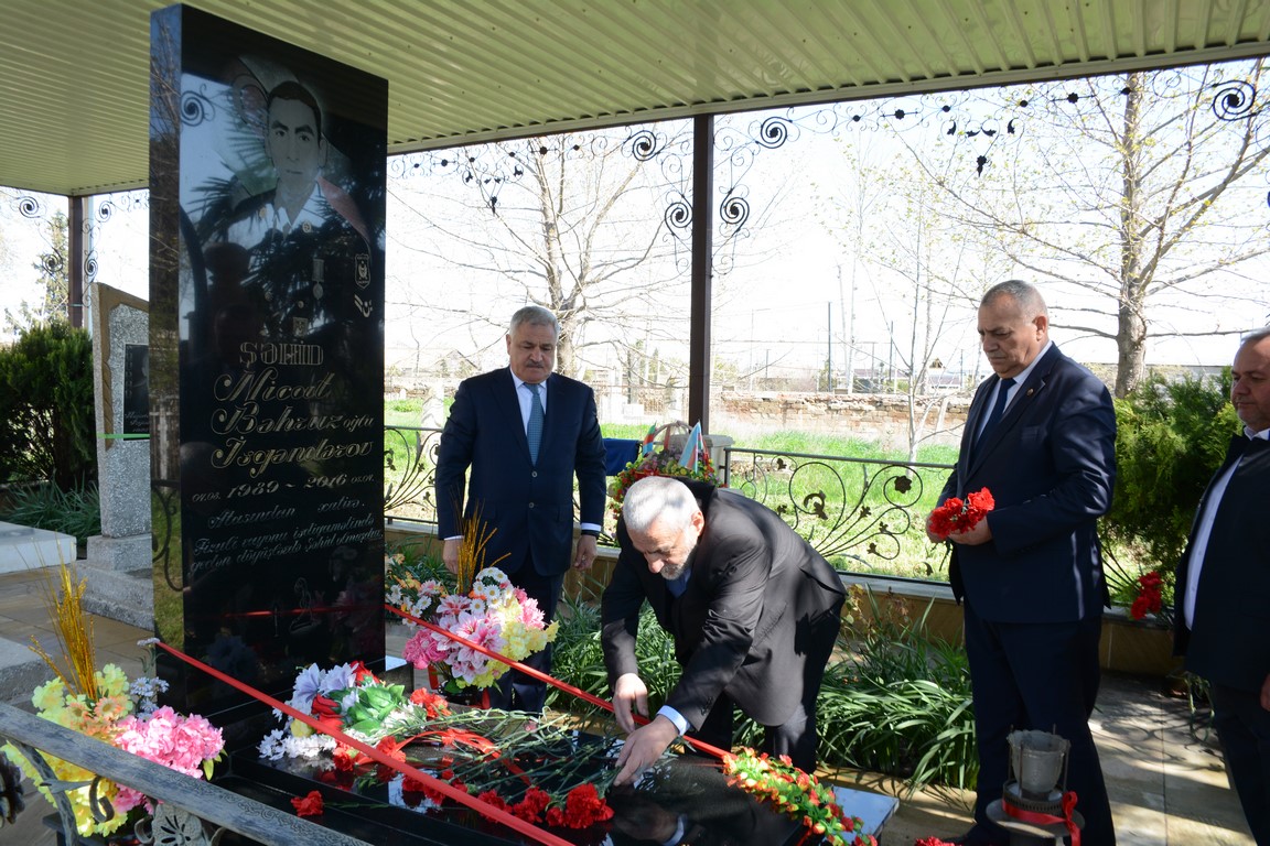 Ziyarət zamanı Tərtər Cümə Məscidinin imamı Sadiq Cəfərov şəhidin ruhuna dualar oxuyub.