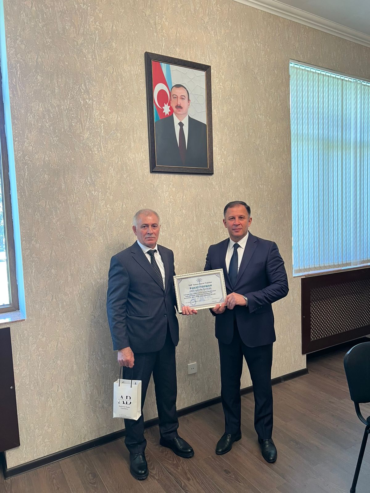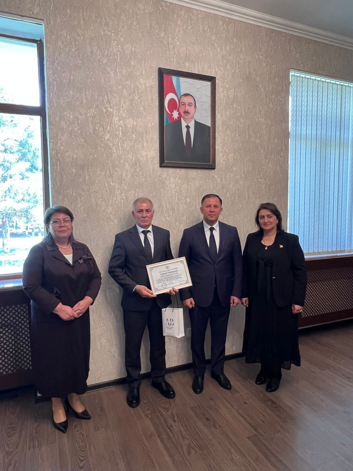Sonda partiya veteranına rayon təşkilatı tərəfindən fəxri fərman və qiymətli hədiyyə verilib.