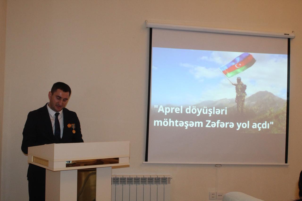 Tədbirdə Aprel döyüşlərinə həsr olunmuş videoçarx nümayiş olunub.