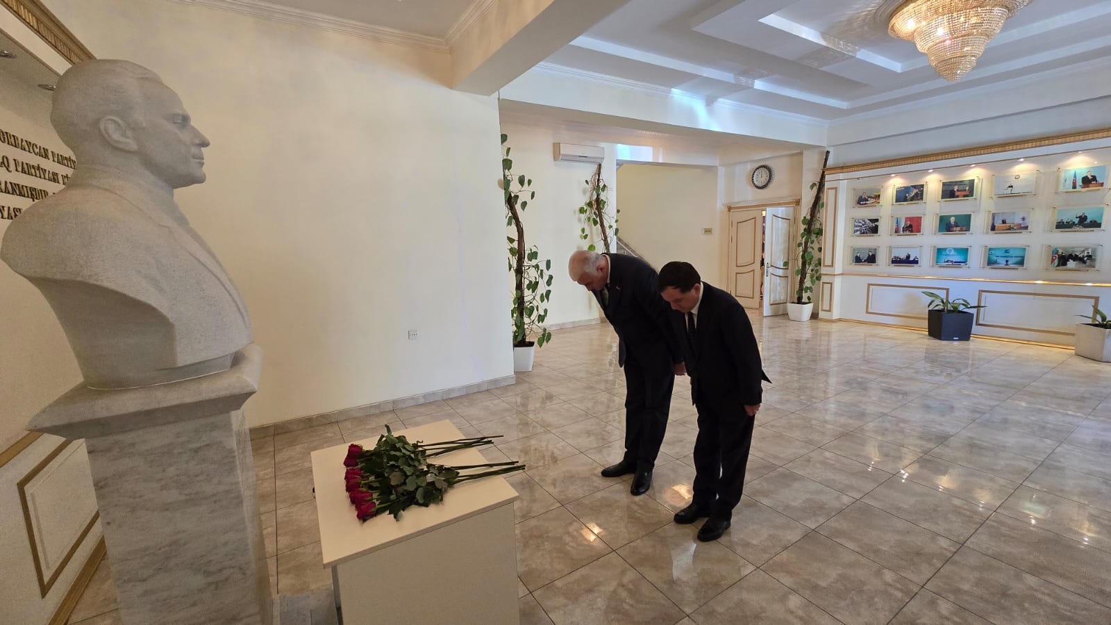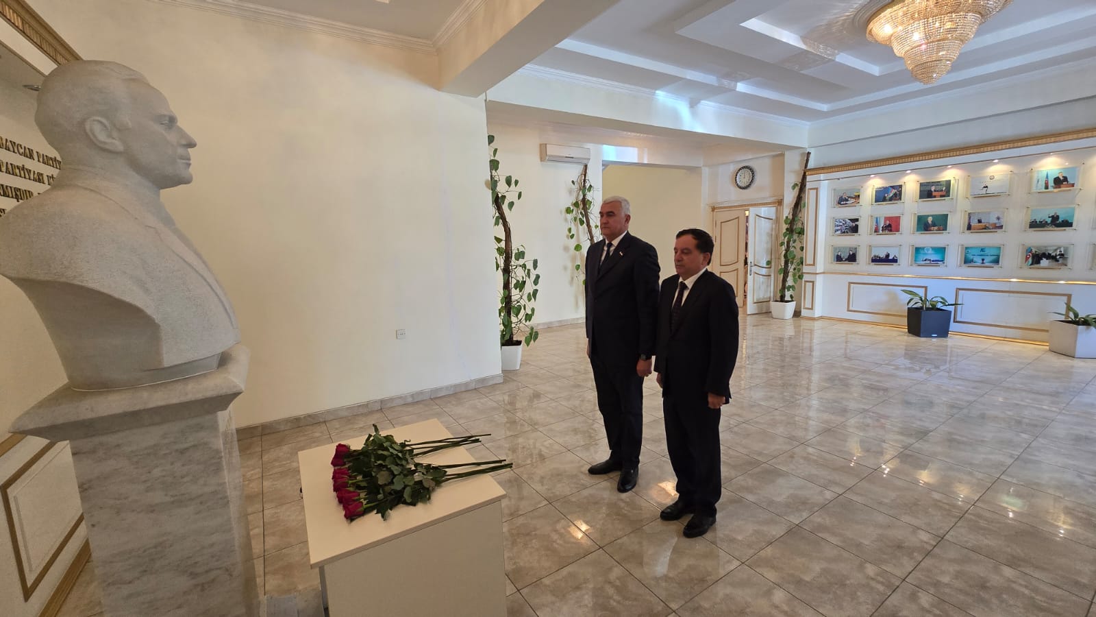 Əvvəlcə Ümummilli Lider Heydər Əliyevin büstü ziyarət edilib, önünə tər güllər düzülüb.