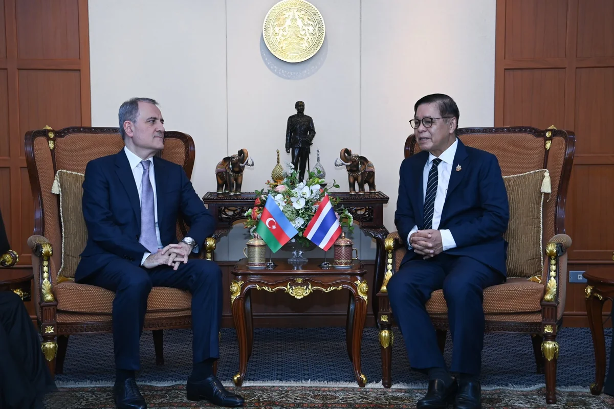 Xarici işlər naziri Ceyhun Bayramov Banqkoka işgüzar səfəri çərçivəsində Tailand Krallığının Baş nazir müavini və xarici işlər naziri Sihasak Phuangketkeou ilə görüş keçirib.SİA xəbər verir ki, bu barədə XİN-in "X" sosial media hesabında məlumat yayılıb.Qeyd olunub ki, görüş zamanı tərəflər ikitərəfli münasibətlərin hazırkı vəziyyəti və gələcək perspektivləri müzakirə ediblər.Siyasi dialoq, iqtisadi və ticarət əlaqələri, eləcə də mədəniyyət və turizm sahələrində əməkdaşlığın genişləndirilməsi üçün ciddi potensialın olduğu vurğulanıb.Həmçinin, Azərbaycanın 2025-ci ilin dekabrında Tailandda səfirliyinin açılması və iki ölkənin XİN-ləri arasında ilk siyasi məsləhətləşmələrin keçirilməsi münasibətlərin institusional əsaslarının gücləndirilməsi baxımından mühüm mərhələ kimi qeyd olunub.BMT-nin Asiya və Sakit Okean üzrə İqtisadi və Sosial Komissiyası kimi çoxtərəfli platformalarda əməkdaşlığın artırılmasının vacibliyi də diqqətə çatdırılıb.Ceyhun Bayramov həmkarına Azərbaycanın post-münaqişə dövrü sülh gündəliyi, minatəmizləmə fəaliyyəti və azad edilmiş ərazilərdə genişmiqyaslı bərpa-quruculuq işləri barədə məlumat verib.Tərəflər, həmçinin regional təhlükəsizlik məsələlərini və Yaxın Şərqdəki vəziyyəti də müzakirə ediblər.