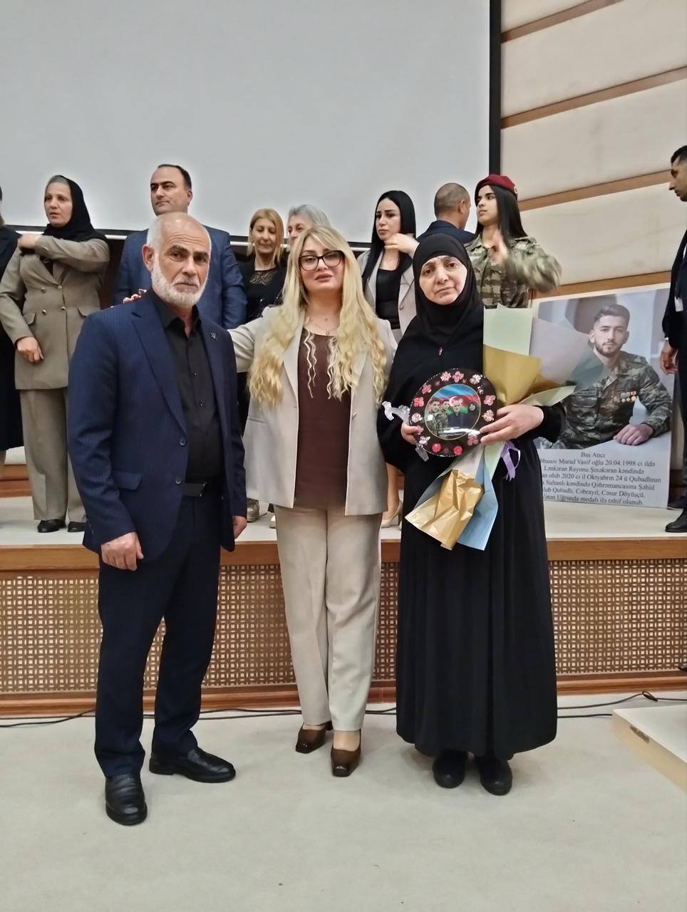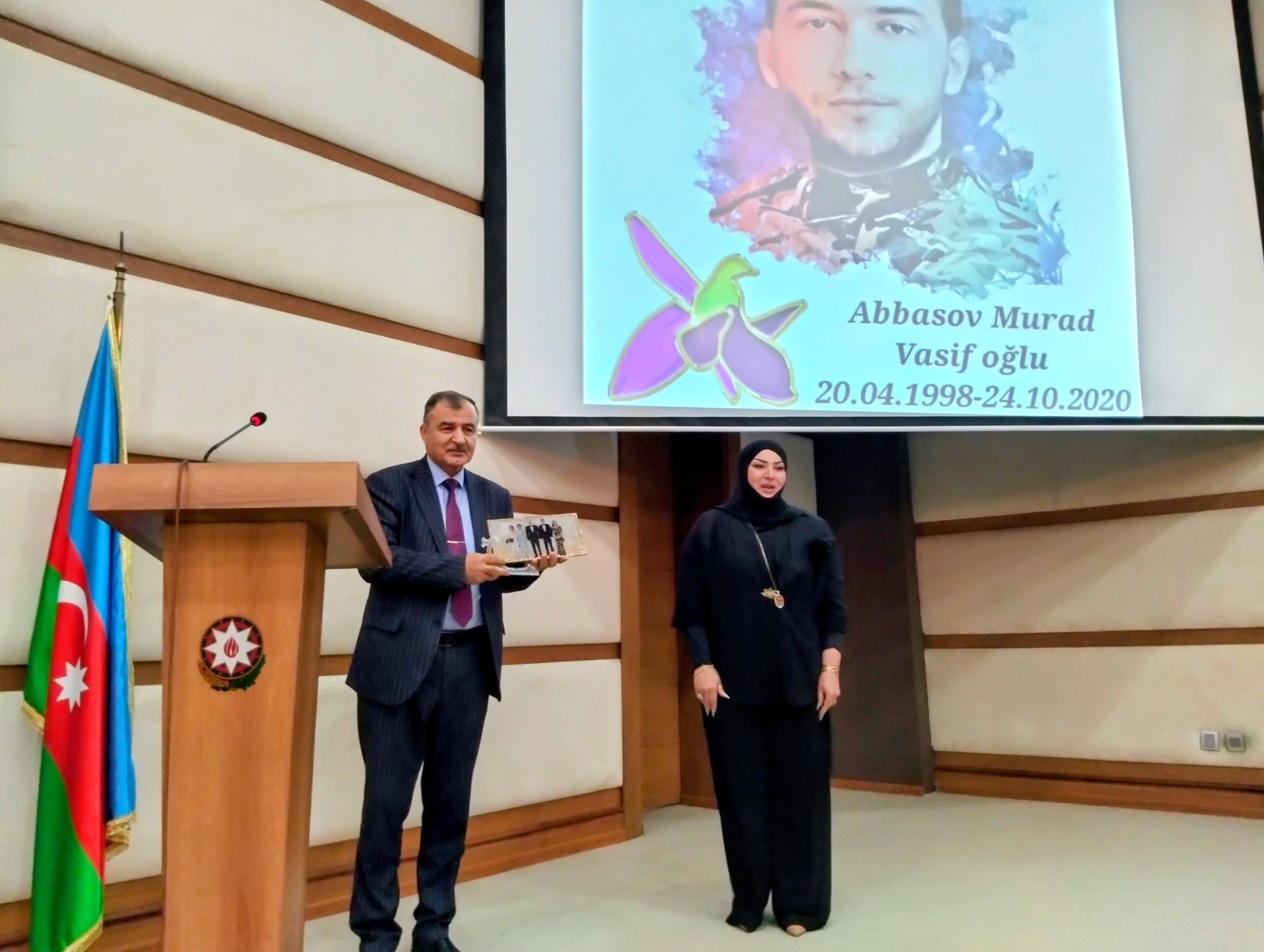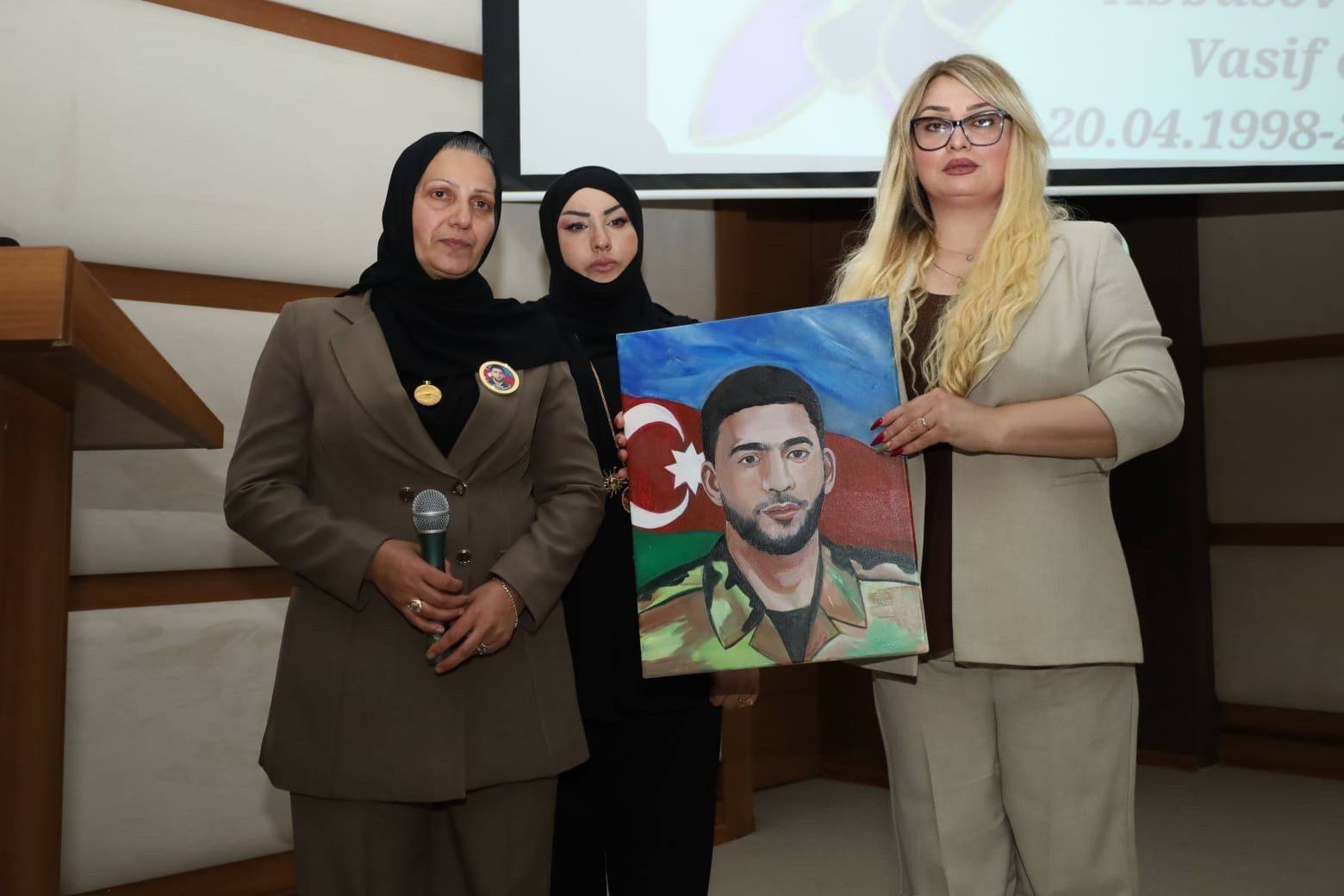 Çıxışını bitirən natiq Mərkəzin rəsm kursunda şəhidin yağlı boya ilə çəkilmiş portretini şəhidin anasına təqdim etdi.