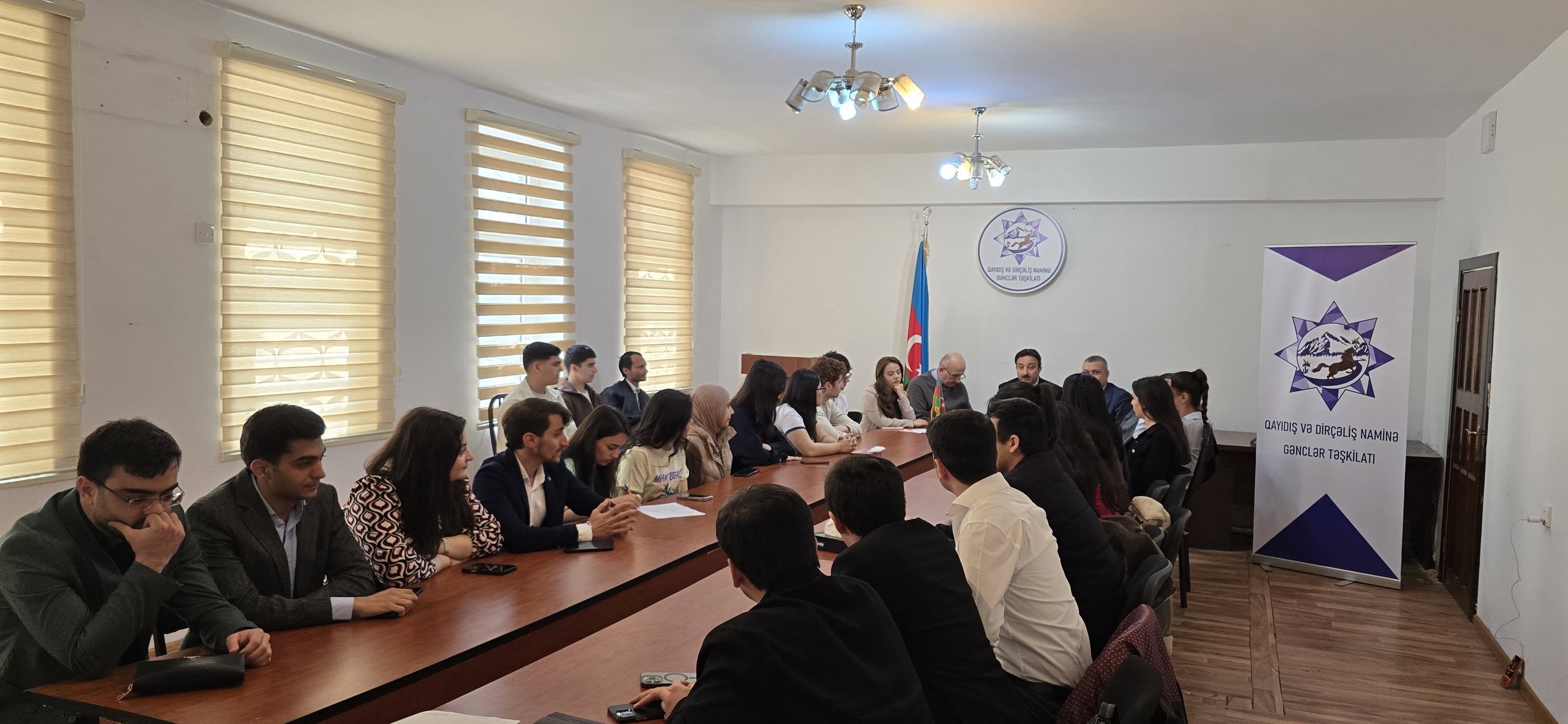Qayıdış və Dirçəliş Naminə Gənclər Təşkilatının qərargahında Qarabağ, Şərqi Zəngəzur və Qərbi Azərbaycandan olan bir qrup gənclərlə görüş keçirilib. Tədbirdə təşkilatın ali təhsil müəssisələrində fəaliyyət göstərən özəklərinin bir qrup nümayəndəsi iştirak edib. Müzakirələr zamanı bir sıra aktual məsələlərə toxunulub, gənclərin sosial vəziyyəti, məşğulluq imkanları və reinteqrasiya prosesində qarşılaşdıqları çətinliklər diqqət mərkəzində olub.