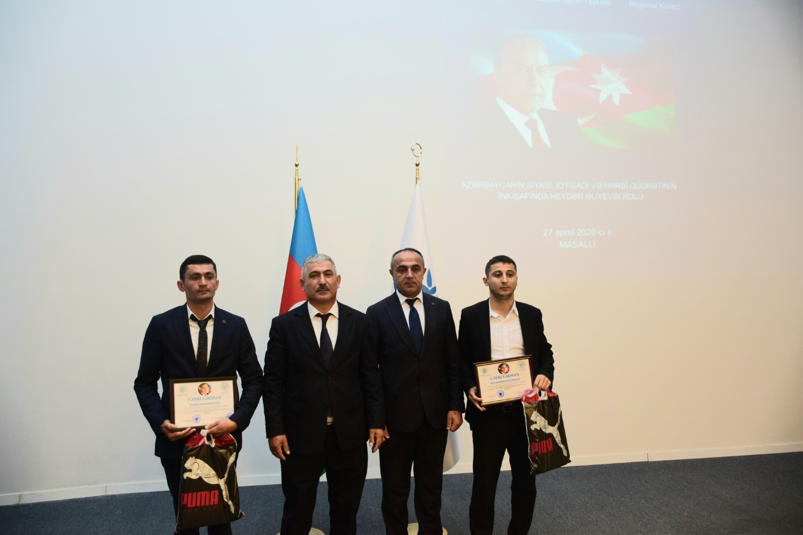 Yeni Azərbaycan Partiyası Masallı rayon təşkilatı, Masallı rayon İcra Hakimiyyəti və Masallı Dövlət Regional Kollec ərazi partiya təşkilatının birgə təşkilatçılığı ilə aprelin 27-də Masallı rayon Heydər Əliyev Mərkəzində Ulu Öndər Heydər Əliyevin anadan olmasının 103 illiyi münasibəti ilə “Azərbaycanın siyasi, iqtisadi, hərbi qüdrətinin inkişafında Heydər Əliyevin rolu” mövzusunda ümumrayon konfransı keçirilmişdir.